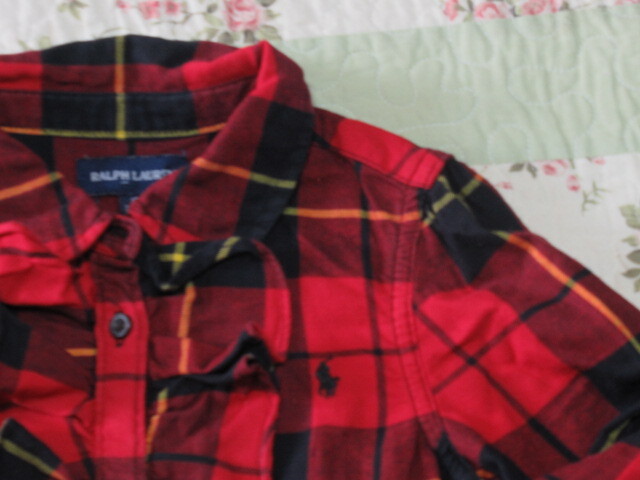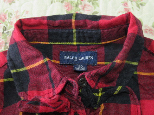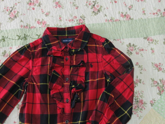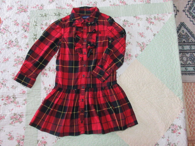 ラルフローレン120cm赤チェック長袖ワンピース*送料185円