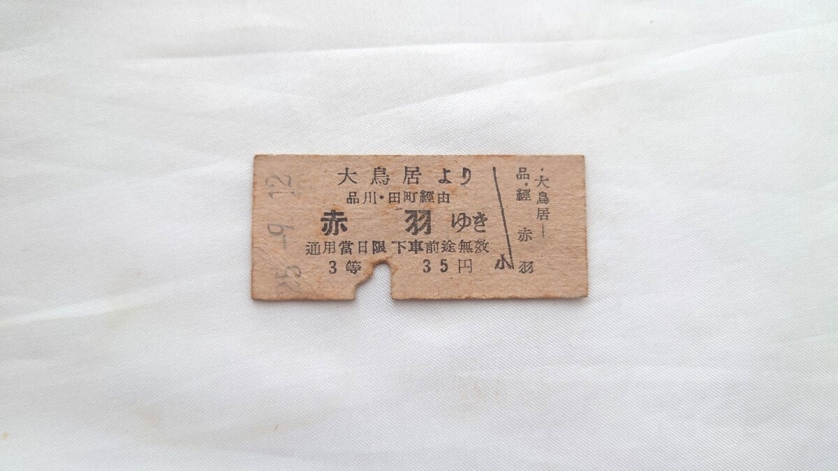 ★京急★大鳥居より赤羽ゆき国鉄連絡乗車券★B型硬券昭和25年