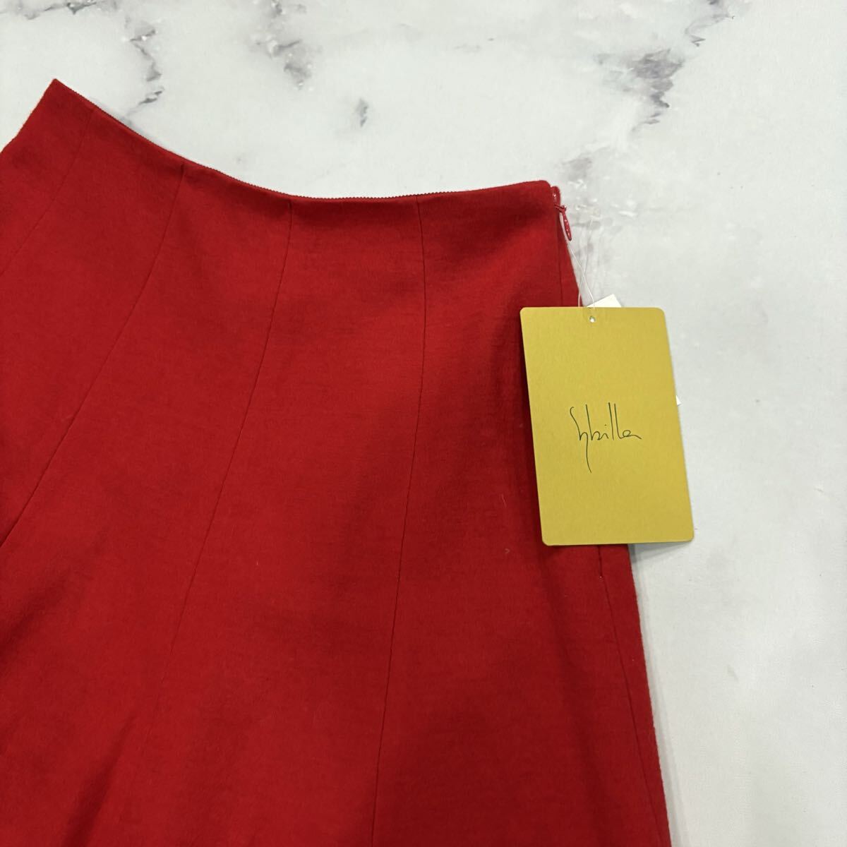 AF ■ 未使用 '日本製' 履き心地抜群 Sybilla シビラ WOOL100% ロング フレアスカート SIZE:SS レディース 高級婦人服 ボトムス 赤系