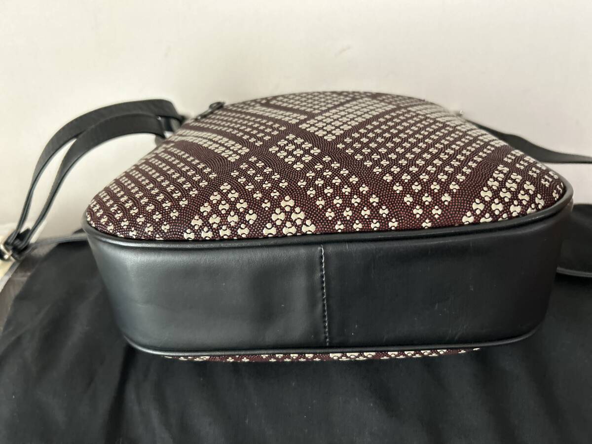 目立った傷、汚れもなく綺麗です。サイズは横幅最大25㎝、高さ23㎝、奥行き6、5㎝、ショルダーの長さ130㎝で、自由に調節可能。(素人採寸の為多少の誤差はお許しください。中に詰め物をして計測。)内側にオープンポケット1個、ファスナーポケット1個、外側にオープンポケット1個有り。同梱可能(3日以内)他にも出品していますので、ご覧ください