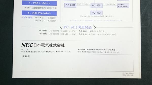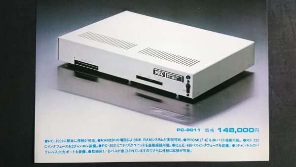 | 【昭和レトロ】『NEC(エヌイーシー) パーソナルコンピューター PC-8000シリーズ 拡張ユニット PC-8011 カタログ』1980年頃 日本電気株式会社 | |