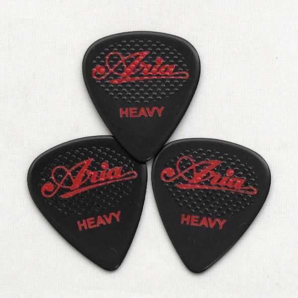 新品 ギターピック3枚セット ラバーグリップ スタンダードシェイプ 黒 HEAVY/1.0mm セルロース Aria