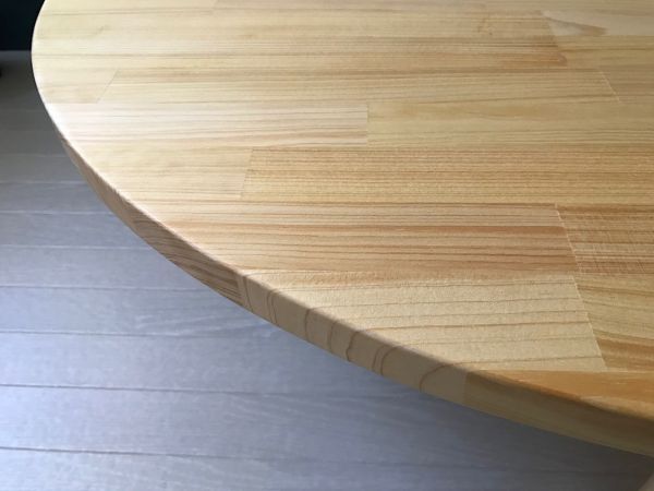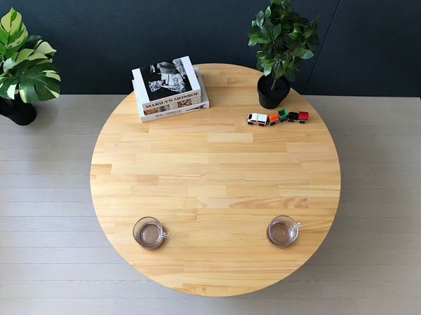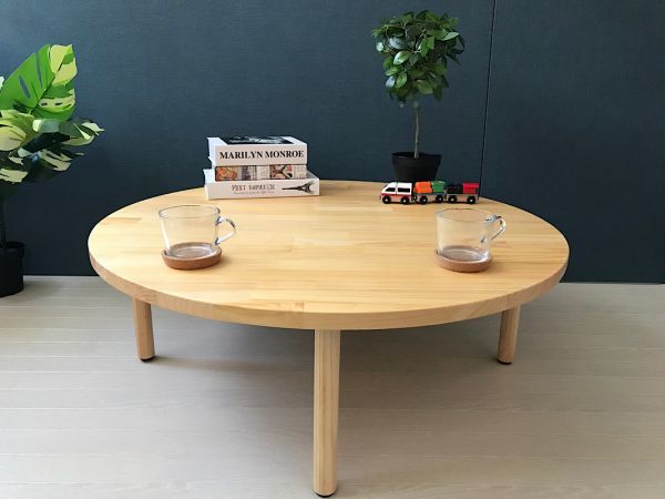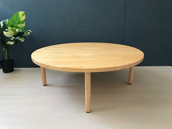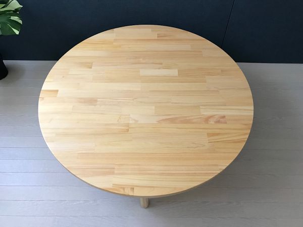 ◎上品な木目が特徴の、パイン材を天板に使用した丸型ローテーブルです。(真円では御座いません!)
