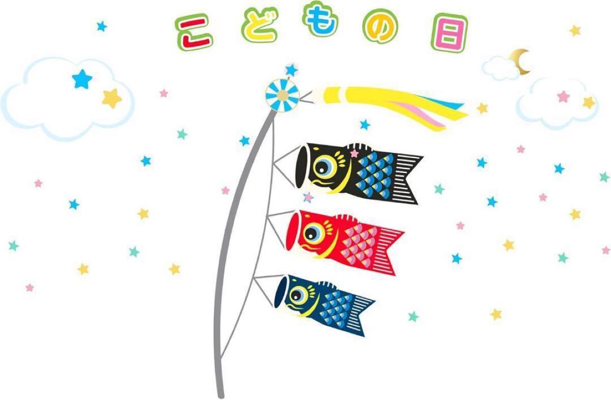 素晴らしい要素を含むステッカー:黒、レッド、ブルの3色の鯉や、吹流し、星や雲、タコ、文字こどもの日が含まれております