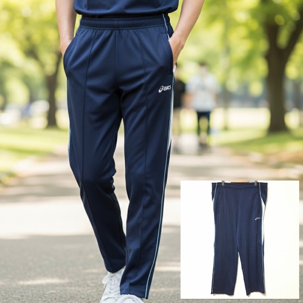 スポーツシーンで大活躍asicsのトレーニングパンツです。オールシーズン着用可能な万能な1着で、スポーツやダンスはもちろん、普段着にも最適です。目立つダメージやヨゴレはありませんので、まだまだ着用していただけると思います!サイズの記載は無いので採寸を参考にして下さい。