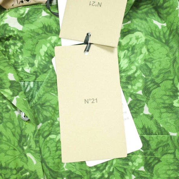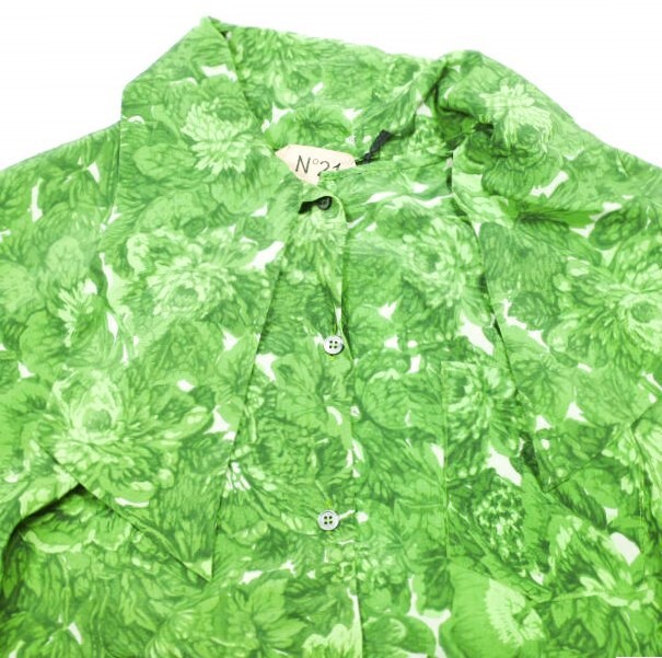 新品 N°21 ヌメロヴェントゥーノ 21AW フラワープリント ボウタイシルクブラウス 21A-G063-5505 38 GREEN 定価80,300円 長袖 花柄 シャツ