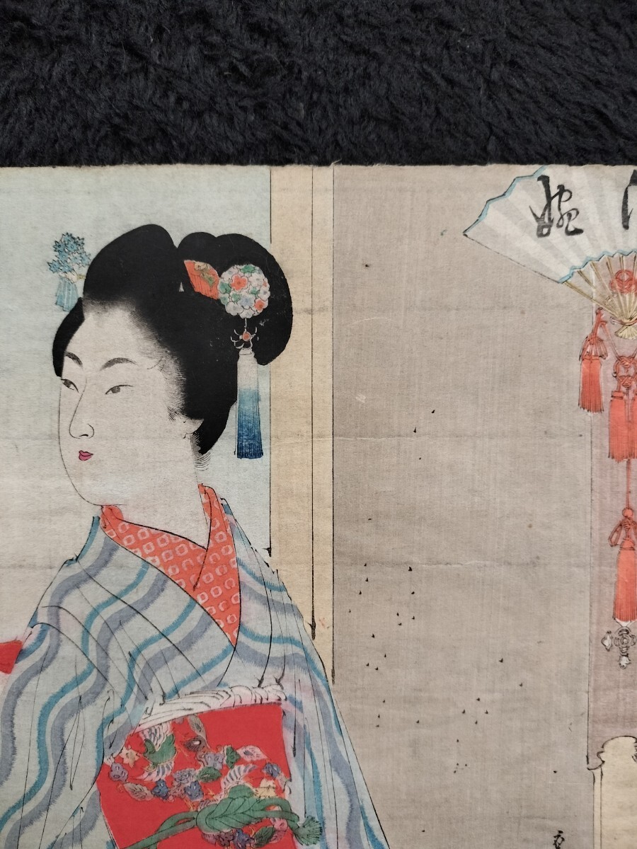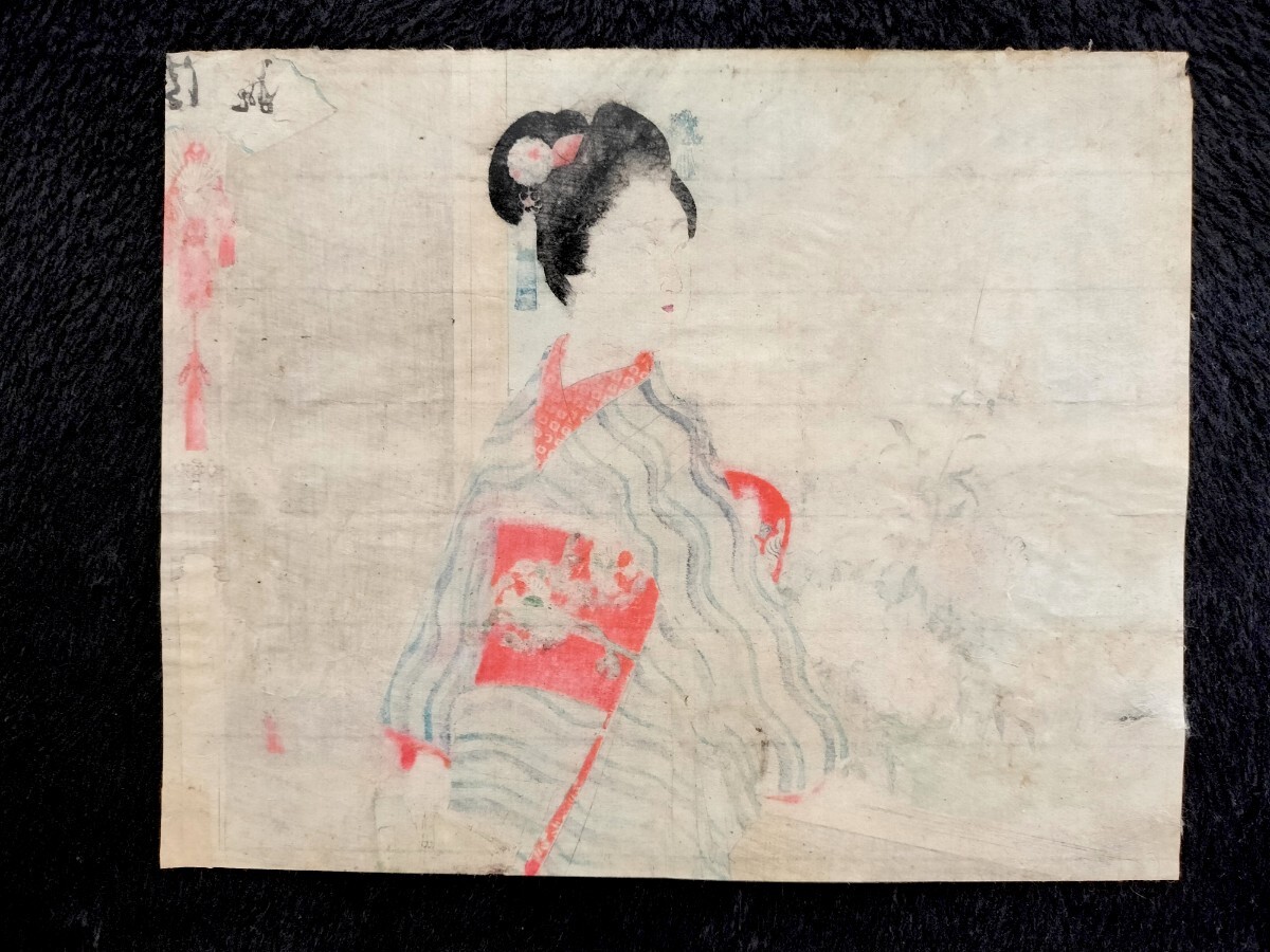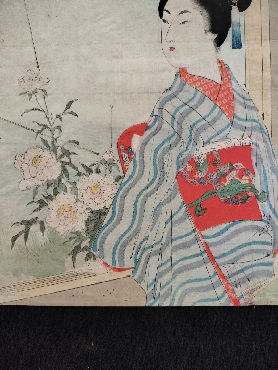 作品のダメージにつきましては、すべての出品物は骨董品、中古品ですので説明しきれない時代物としてのシミ・イタミ・シワ・剥脱・ヤブレ・ヤケ・変色等見られます。目立つダメージは明記しておりますが、画像では見にくい細かなダメージがある場合がございます。骨董品・美術品としての特性としてご理解いただけます場合のみご入札をお願いいたします。