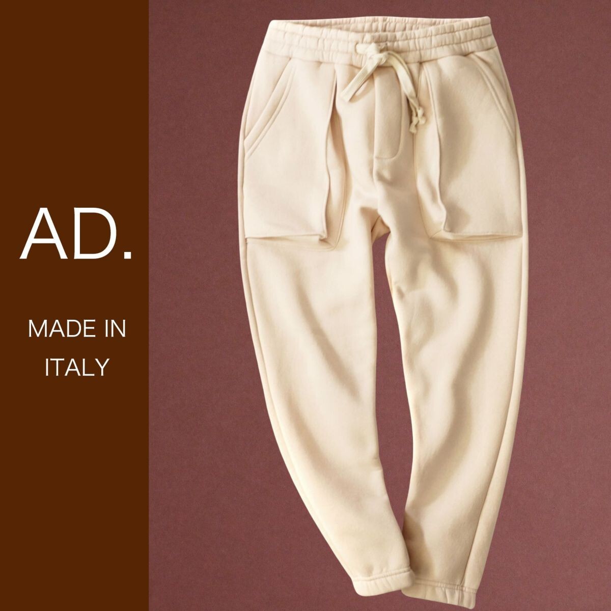 ●イタリア ミラノの街着ブランド「AD.メイドインイタリー」の、両サイドにイタリア製バッグのようなマチのあるアウトポケットが特徴の、かっこいいジョガーパンツです。日本未入荷で、当方のみご紹介する、入手困難なアイテムです。超テーパードシルエットが採用されており、イタリアの卓越したデザイン哲学が詰まった、モダンなボトムです。 ●「AD.メイドインイタリー」は、ミラノ発祥の現代のイタリアのスタイリッシュなデザインのアイテム揃いです。主にイタリア国内のみに発信されているブランドで、イタリア人の体系は、他の欧州諸国に比べ日本人にも近く、ちょうど良いパターンにて生産されていますので、ご到着後、お直しなしですぐにご着用いただけるアイテムばかりです。ファッションに敏感なイタリアの方も、簡単にどこでも手に入るブランド物に手に出すよりも、自らの発見で見つけ出し、ご自身のスタイルを作り上げていく印象です。多国展開のグローバル化されたブランドにはない、ジャストサイズ感のある逸品を見つけてみて下さいませ。 ●こちらAD. メイドインイタリーのアウトポケットタイプのジョガーパンツは、ミラノの洗練された街のスタイルを取り入れながら、実用性とモダンなデザインを両立した一着です。ややゆとり感のある腰回りから、足首に吸い付くような「超テーパード」シルエットが特徴の、魅力的な逸品です。昨年以前のコレクション品が多いYahoo!オークションの、いわゆる日本国内にもよくあるブランド物にはない、「只今のイタリア」をご紹介できる、今季新作のシルエットですので貴重です。 このまんまのシルエットを穿くイタリア人を、直近で多数見てきておりますので、日本国内でも、サクッと気軽に現在のイタリアンスタイルのカッコ良さを取り入れていただけることかと存じます。素材にはコットン80%とポリエステル20%の混紡生地が使用されており、着心地の良さと耐久性を兼ね備えています。コットンの柔らかさが肌に心地よく、内側は「ふわっふわっ」の素材です。ポリエステルが若干混紡されることでしわになりにくく、長時間の着用でもその美しいシルエットが保たれます。また、内側の裏起毛素材は保温性に優れ、寒い季節でも暖かさをしっかりとキープします。寒さが厳しい季節に活躍する、この裏起毛の快適さは、まるでブランケットに包まれているかのような贅沢な着心地を実現しています。デザインの面では、イタリア製バッグのようなマチのあるアウトポケットが目を惹く、特徴的なポケットディテールが施され、存在感あるパンツに仕上がっています。機能性とファッション性を兼ね備えた一着に仕上がっています。日常的な持ち物を収納するのに便利でありながら、全体のシルエットを崩さず、スタイリッシュな印象を与えます。また、ジョガーパンツならではのリラックス感のあるシルエットは、ウエスト部分のドローストリングにより調整が可能で、快適さとフィット感を自由にコントロールできます。カラーリングには、トレンドに左右されにくいベージュ系が採用されており、明るい色合いが上品さを引き立てつつ、さまざまなスタイルにマッチします。ベーシックな色味でありながらも、カジュアルな着こなしから少しフォーマルなシーンまで幅広く対応できる汎用性を持っています。スニーカーと合わせたカジュアルなスタイルにはもちろん、シャツやジャケットとの組み合わせでモダンなストリートスタイルから、高級ホテルのチェックインまで楽しめます。ブルネロクチネリのジャケット他、ハイブランドのアウターともよく似合いそうです。どんなコーディネートにも溶け込みやすく、毎日のワードローブに欠かせないアイテムとなりそうです。 ●超テーパードシルエットにより、腰から裾にかけて徐々に細くなるラインが、脚を細く長く見せる視覚効果を生み出します。とても柔らかな素材使いですので、裾付近もスッキリおさまりがよく、綺麗なシルエットを助けてくれます。国内でよく見かけます硬めの生地ですと、特にスニーカーなどボリュームのあるフットウェアと合わせた時、クラフトペーパーのように裾付近にモコモコ感が残りスッキリしないことがございますが、こちらはどなたでも綺麗な脚のラインとなりそうです。動きやすさを重視しつつ、脚のラインを美しく強調し、全体のスタイリングにシャープな印象を与えるデザインとなっています。特に、足元にかけてスッキリとしたラインが強調されるため、スニーカーやブーツと組み合わせることで、さらに脚長効果が際立ちます。 ●伸縮感あり、スラッシュポケット。裏起毛仕上げ。 ●イタリア製 ●色:ベージュ系 ●素材:コットン80% ポリエステル20% ●サイズ:S M Lの中から、お選びいただけます。*ご落札後、取引連絡よりご希望のサイズをお申し付け下さい(後の変更・交換・キャンセルは一切して頂けません)。ご落札後、24時間以内のご