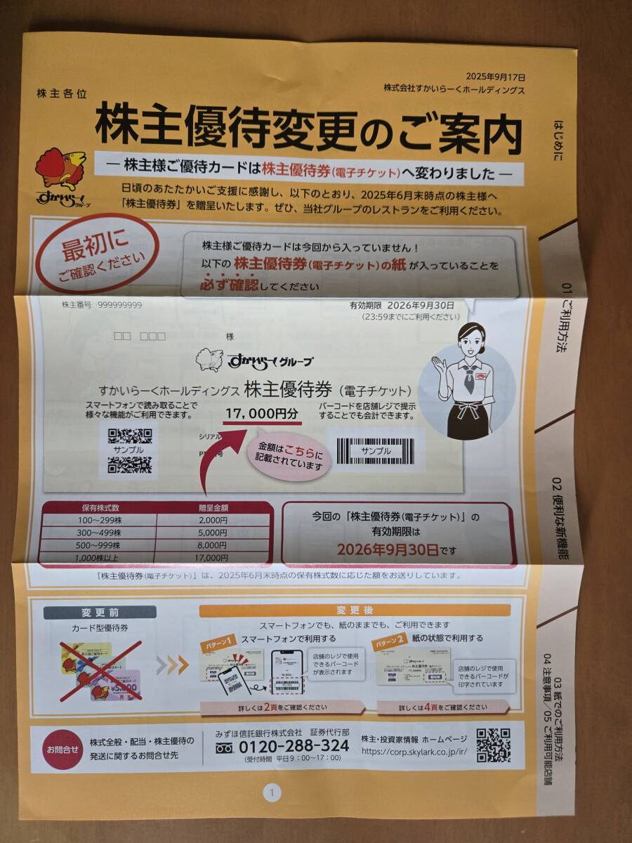 「すかいらーく 株主優待券 電子チケット 5000円」です。