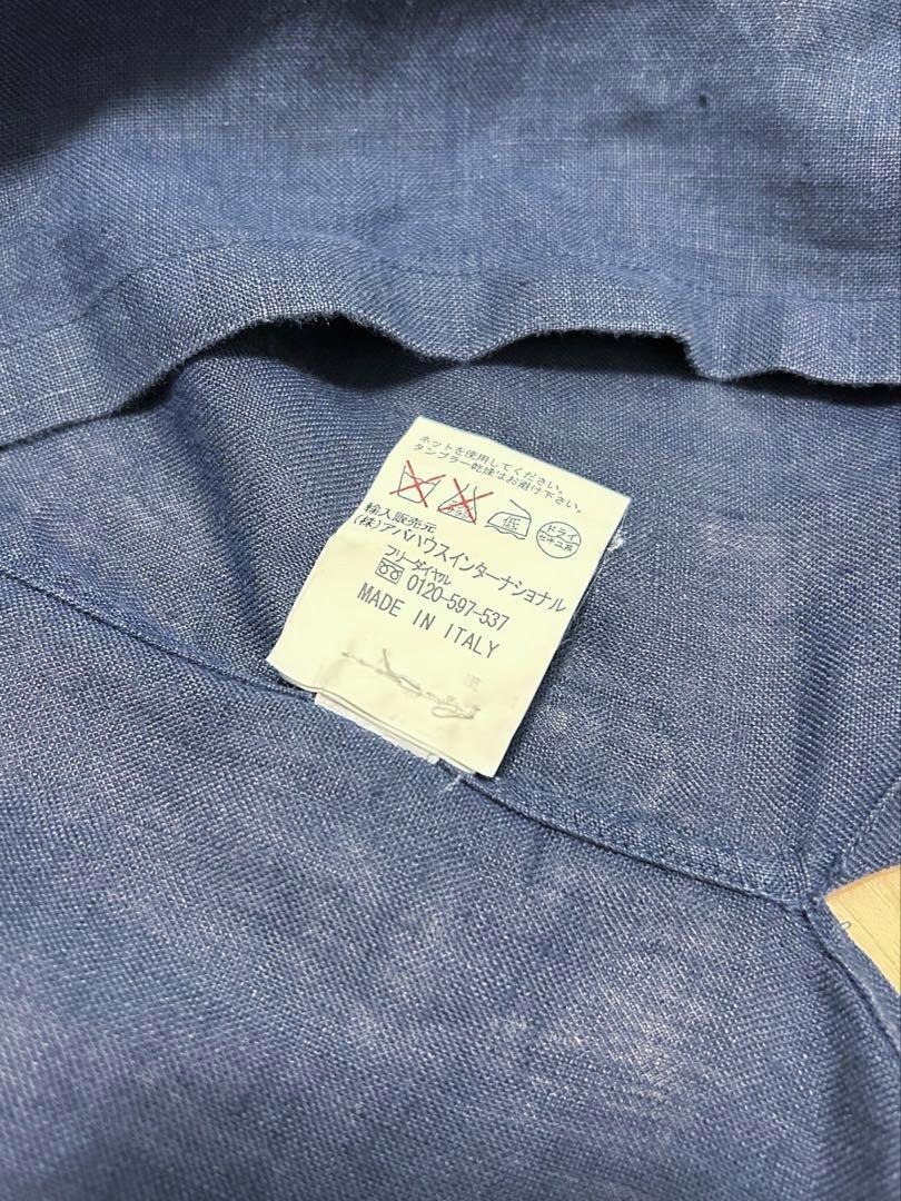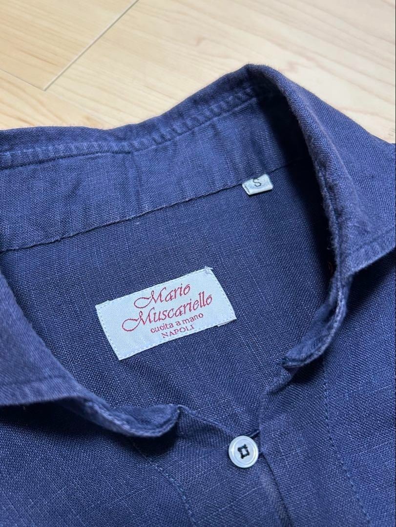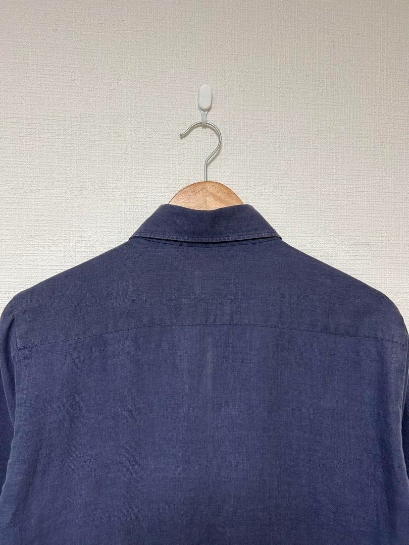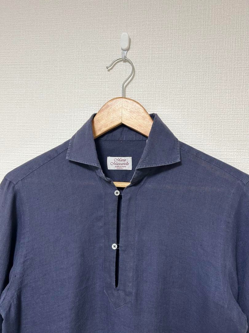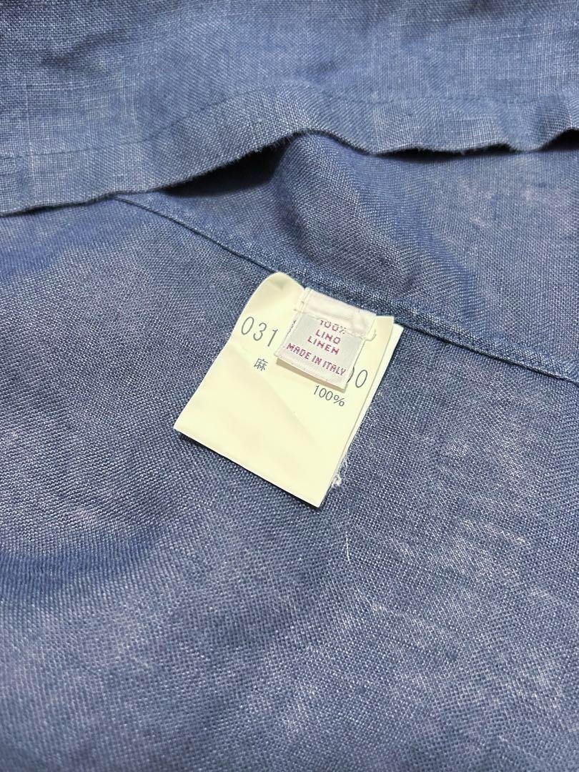 最高級リネン素材のカプリシャツ。袖は七分でボタンはゴムループで留める仕様です。