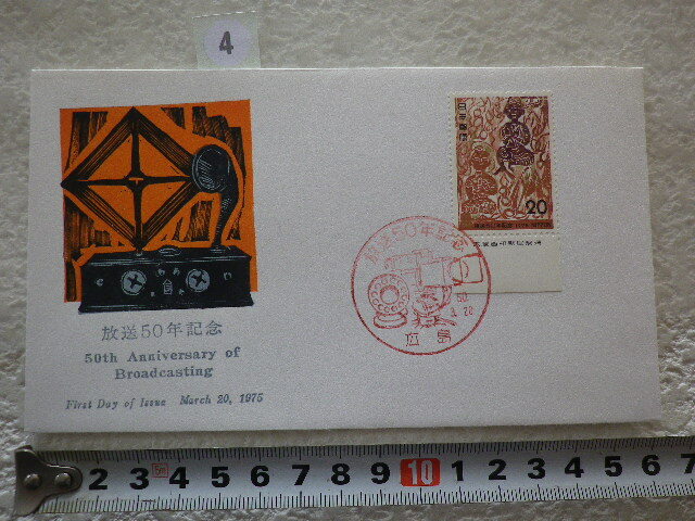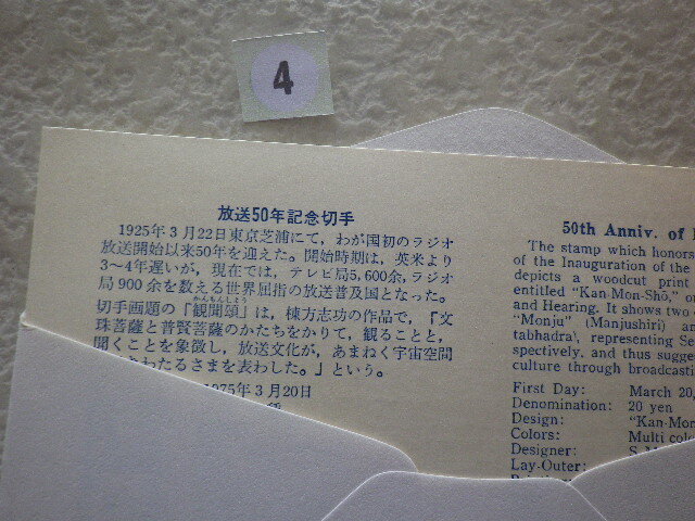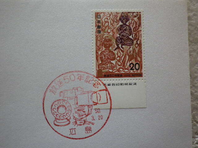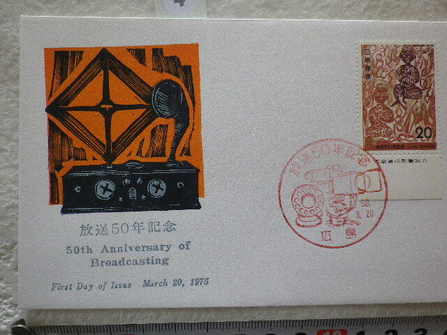 FDC 放送50年 1975年 1貼1消 銘板付 解説書有 jps創作版画●4●同梱大歓迎