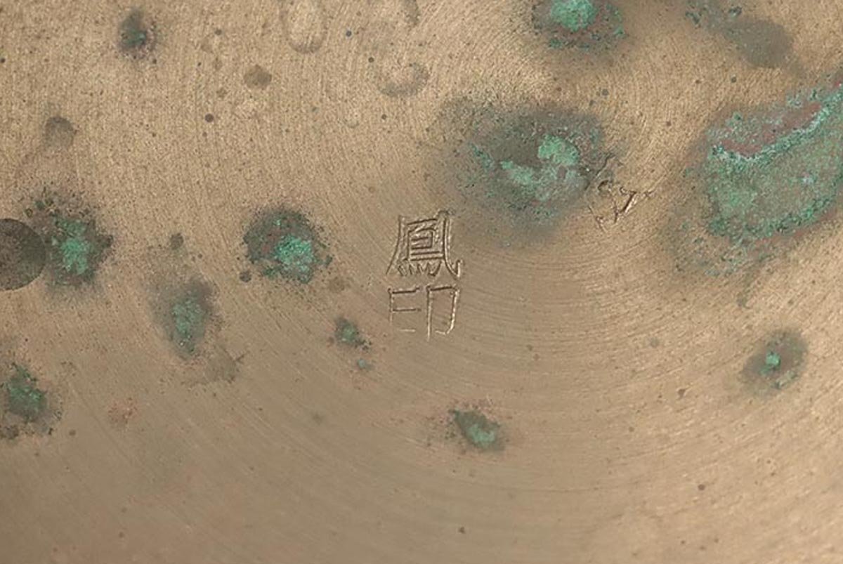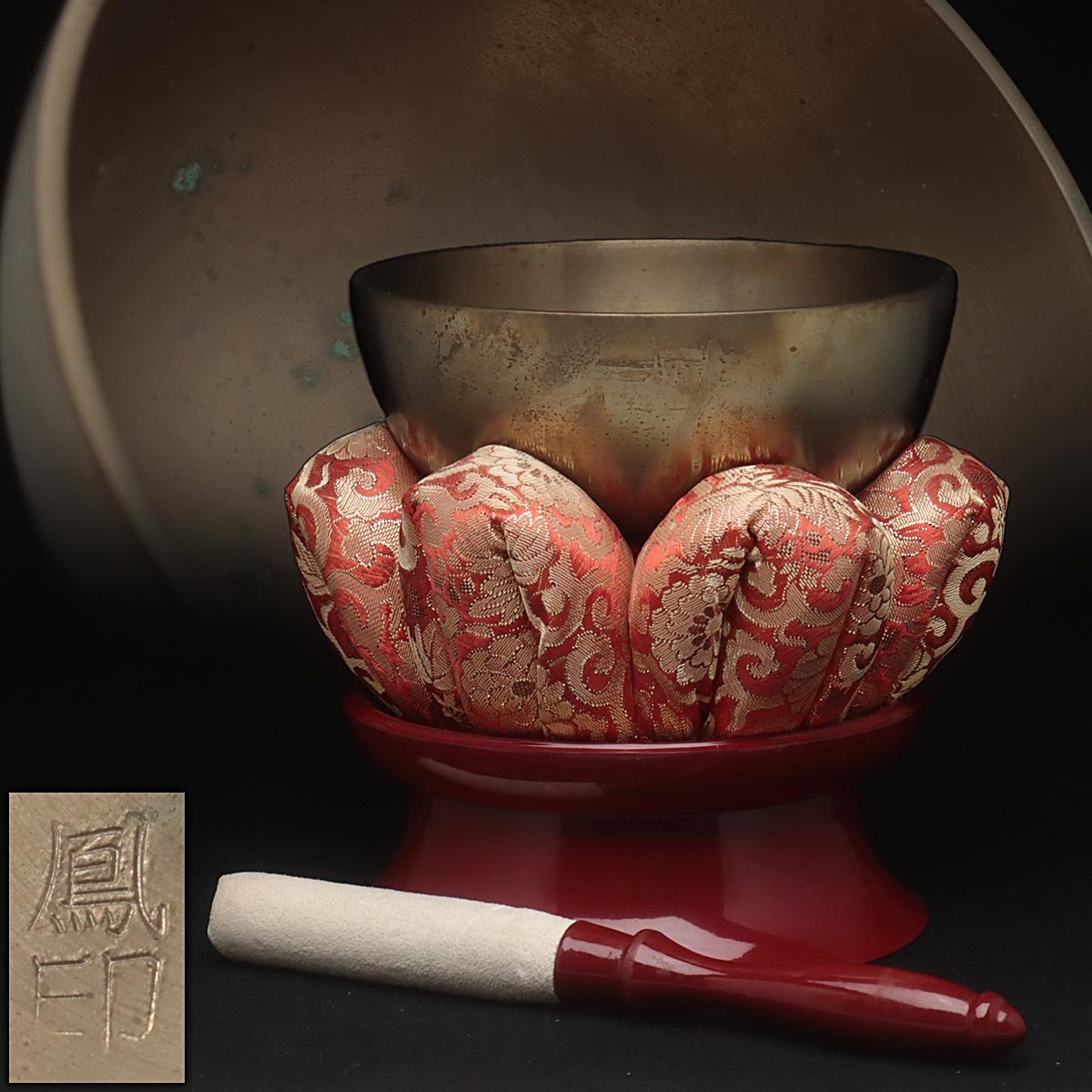 ◆ 仏教美術【鳳印】真鍮製 おりん 一式 全高16.8cm リン台/座布団/リン棒付・御鈴 仏具 荘厳具 ◆