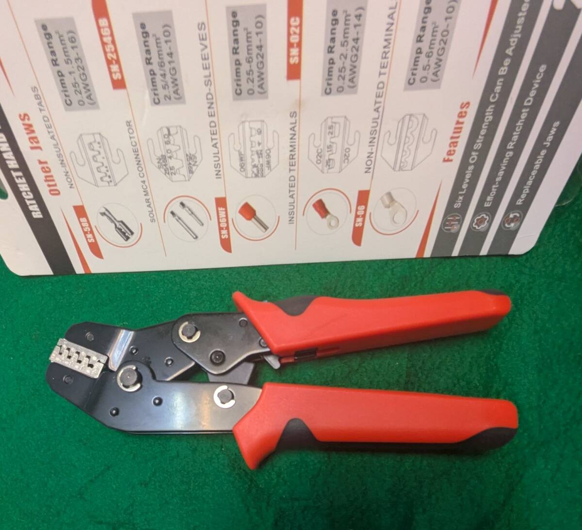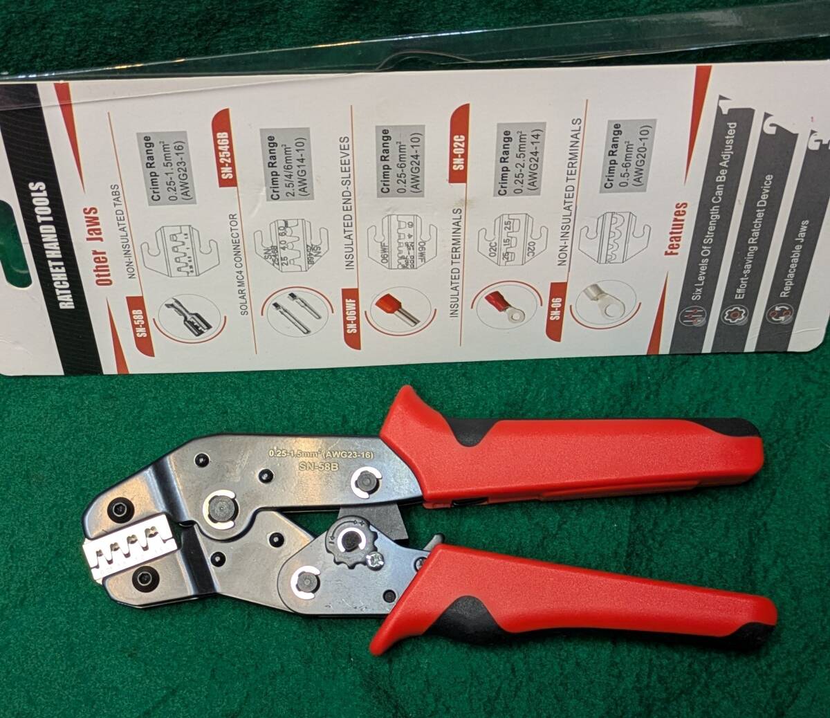 SN-58Bギボシ端子B型端子用の圧着ペンチラチェット式配線太さ0.25~1.5送料全国一律ゆうメール310円