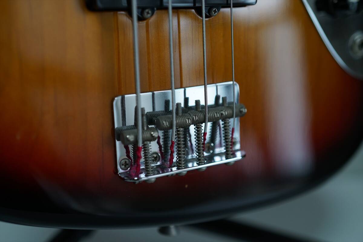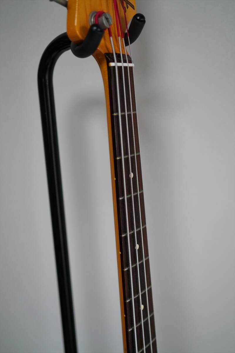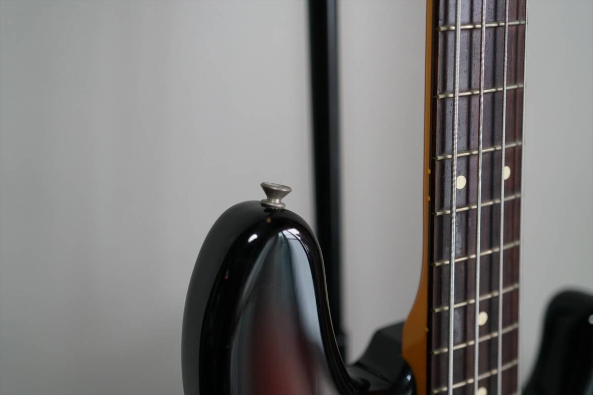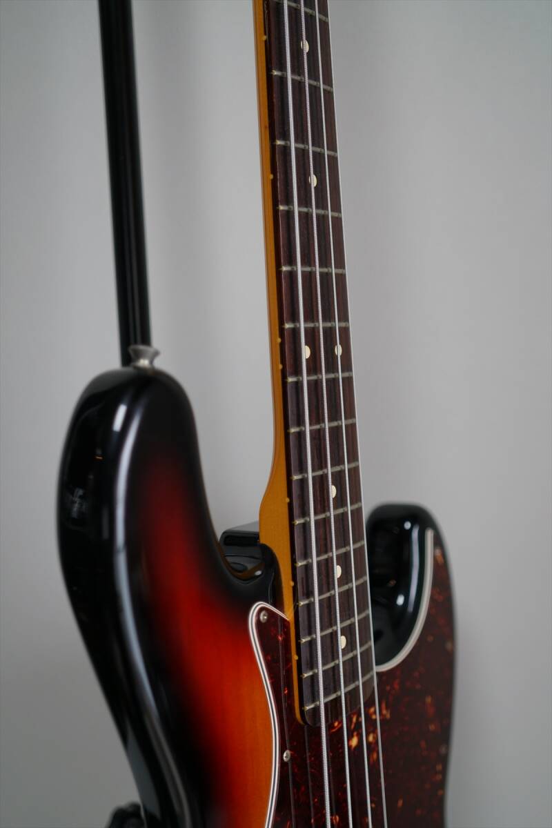 ボディカラーは3CS、そこに4プライのブラウンシェルピックガードを搭載した渋く、そして定番なスタイルのジャズベースとなっています。