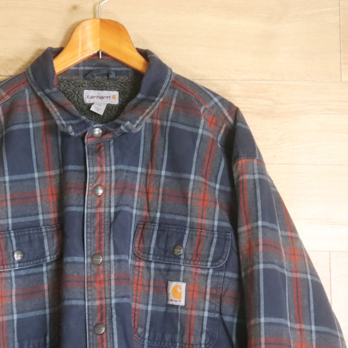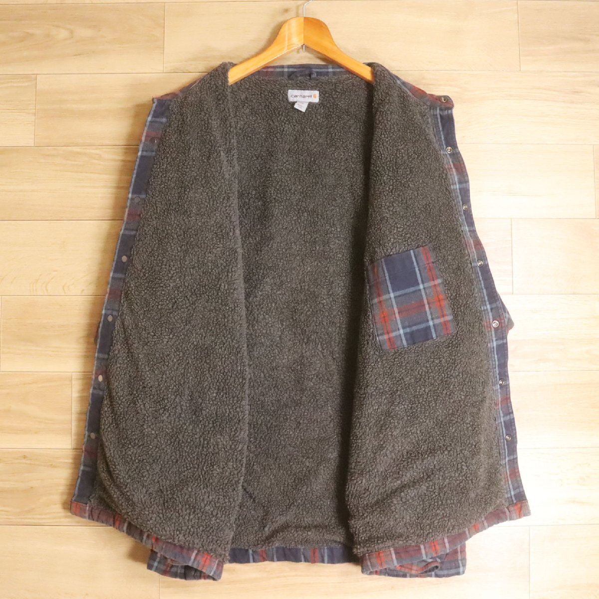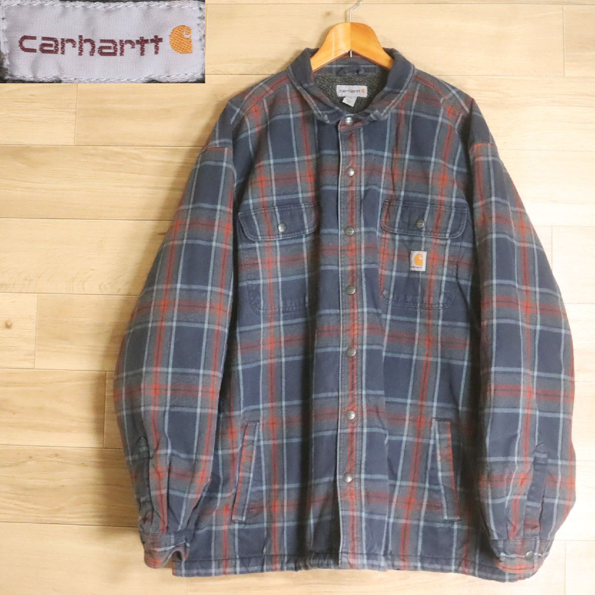 !6R/R6.19-3 Carhartt カーハート ネルシャツジャケット コットン チェック柄 裏ボア ジャンパー 4XL メンズ アメリカ古着