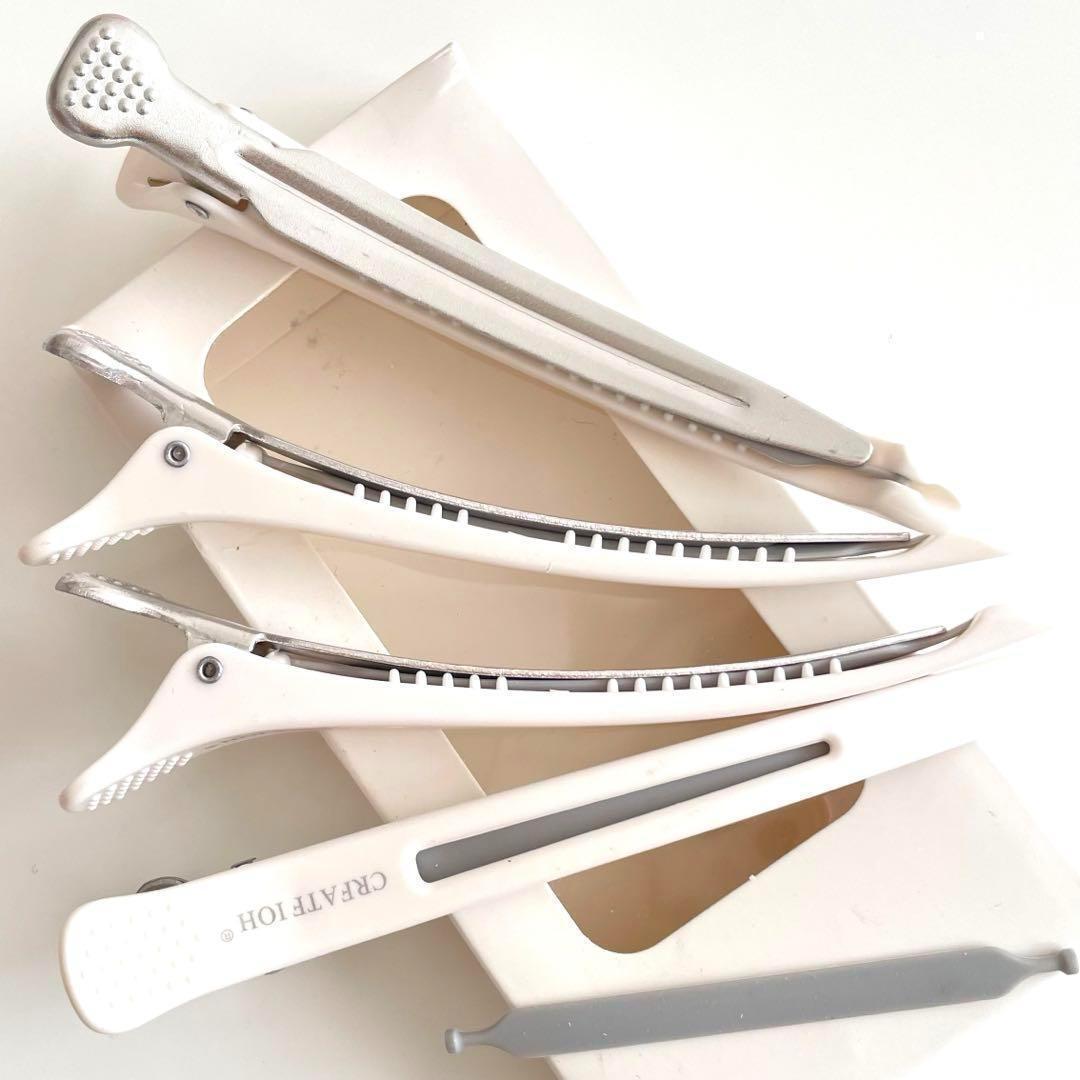 ● EI Sonador ダッカール ヘアクリップ 美容師 業務用 跡がつかない 滑り止め プロ用 11.8cm Lサイズ (白色、4個入り)