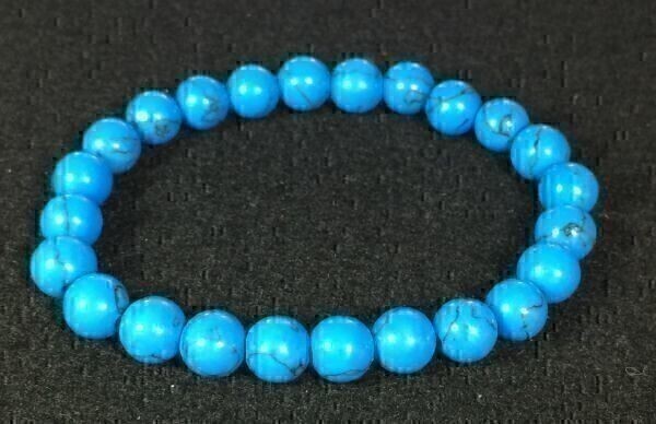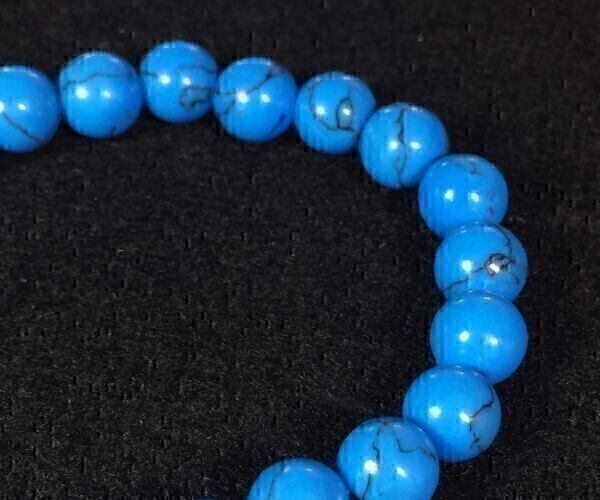 【Premio Fortuna】ターコイズ(トルコ石)ブレスレット ターコイズブルーの8ミリブレス約23粒 内径約16センチeV5uJFMr 163