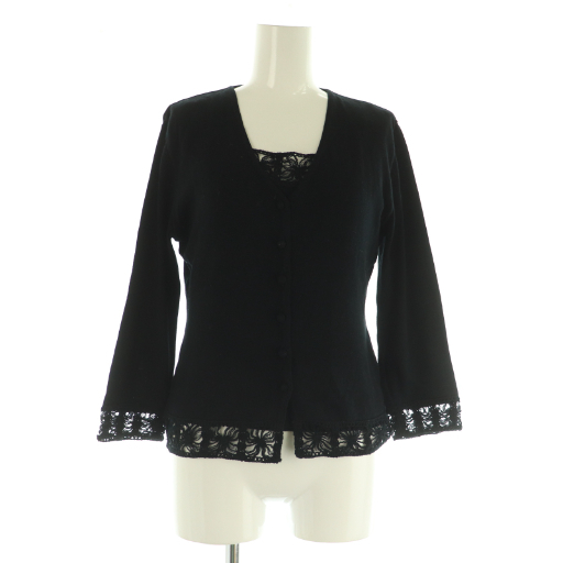 シビラ SYBILLA アンサンブルニット レース切替 七分袖カーディガン ノースリーブカットソー M ブラック /MY ■OS レディース