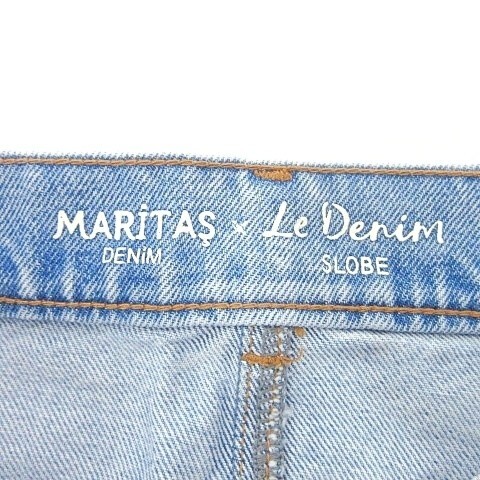 スローブ イエナ SLOBE IENA × MARITAS 21SS デニム スカート ロング ウォッシュ加工 カットオフ 36 S相当 ライトブルー レディース