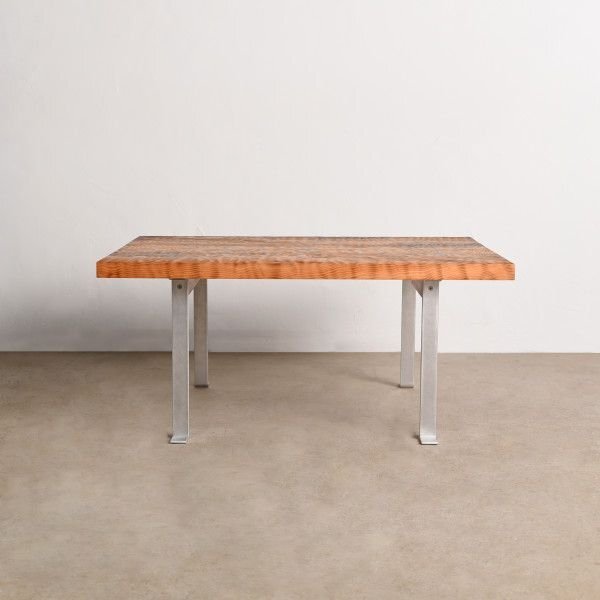 This living table was restructured to reveal the natural beauty of its uzukuri-finished top.Originally a black-painted cedar table it was dismantled and carefully re-polished to preserve the uzukuri texture. The wood grain now catches the light like ripples on water highlighting the distinctive unevenness of the surface.To complement the organic patterns of the tabletop the legs are made from thick aluminum flat bars. The contrast between organic and inorganic materials draws out the essence of each.Rather than being designed from a stylistic concept this piece was shaped by listening to the materials themselves.It suggests a kind of ornamentation that belongs to no category—quiet yet full of potential.