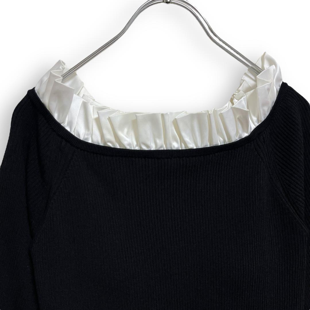 HIAND frill cup in ribbed knit ハイアンド フリル リブニット 半袖 ブラック