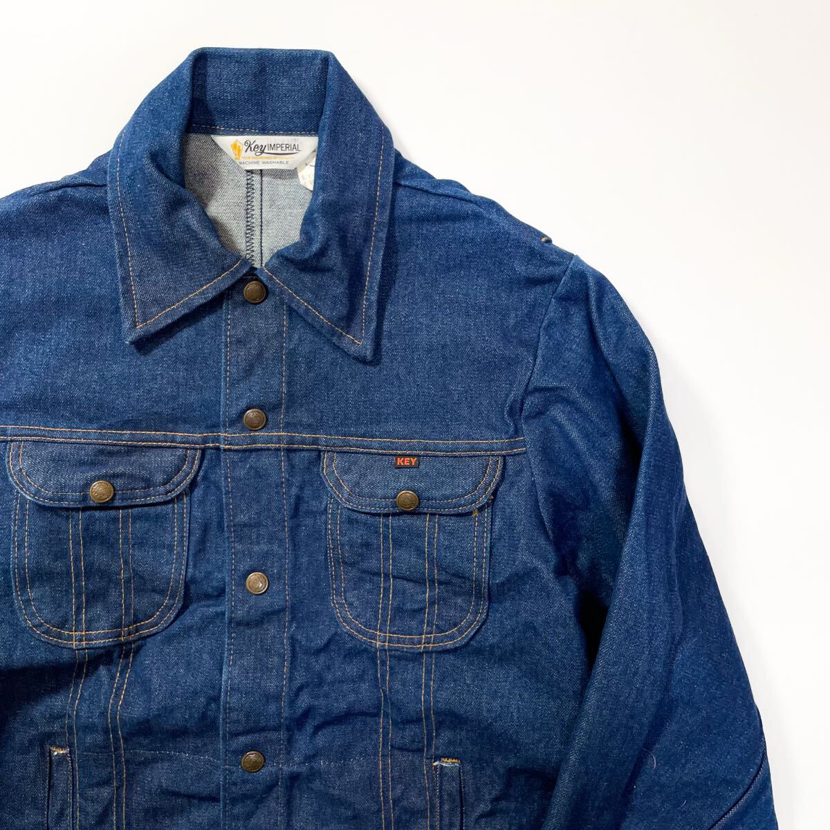 70s 80s Key imperial デニムジャケット 濃紺 インディゴ リーバイス ラングラー ビンテージ アメリカ製 usa old 40long ワーク 70506 60s