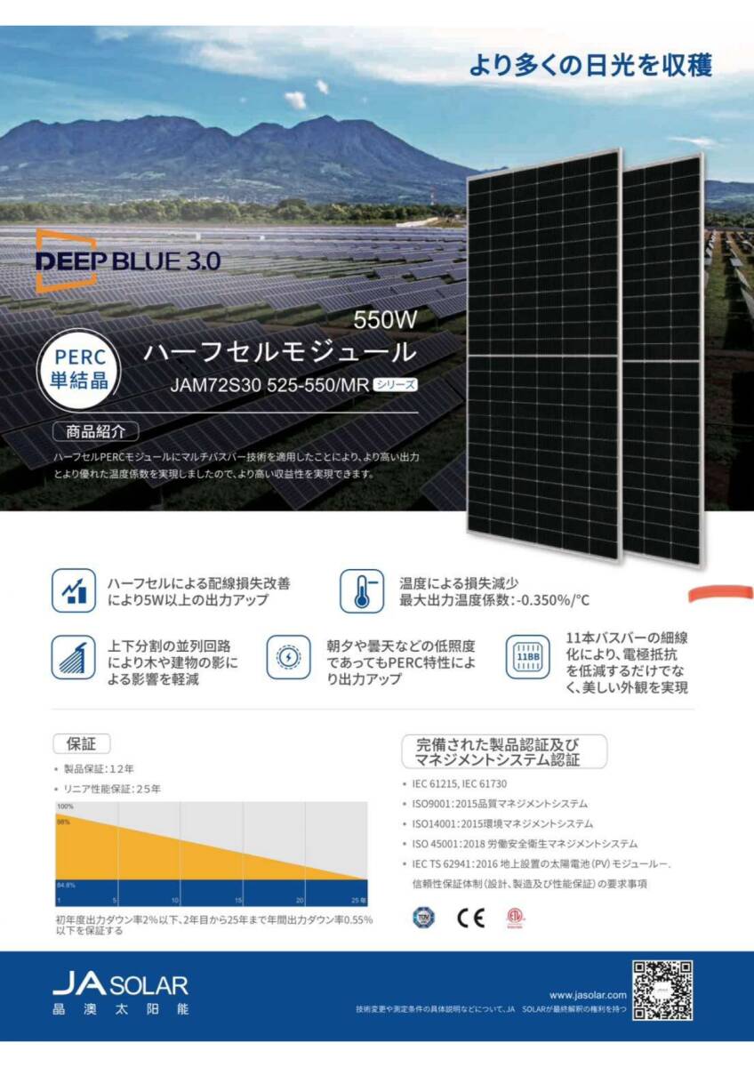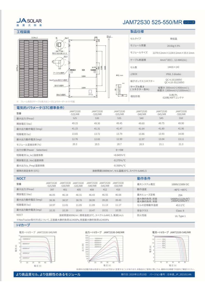 1枚16,200円(税別)・JAソーラー540W JAM72S30-540/MR・10枚セットでの出品です。
