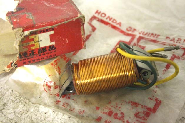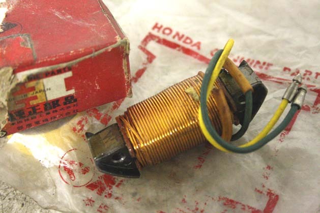 60sホンダ純正、当時の新品箱入り美品のままの、C100 のライト用コイルです。