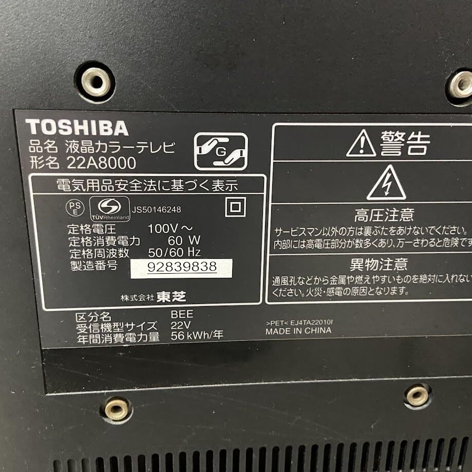 【A】TOSHIBA 22A8000(K) 液晶テレビ 東芝 22V型 ハイビジョン 0909-B002650RGE-1980-8980