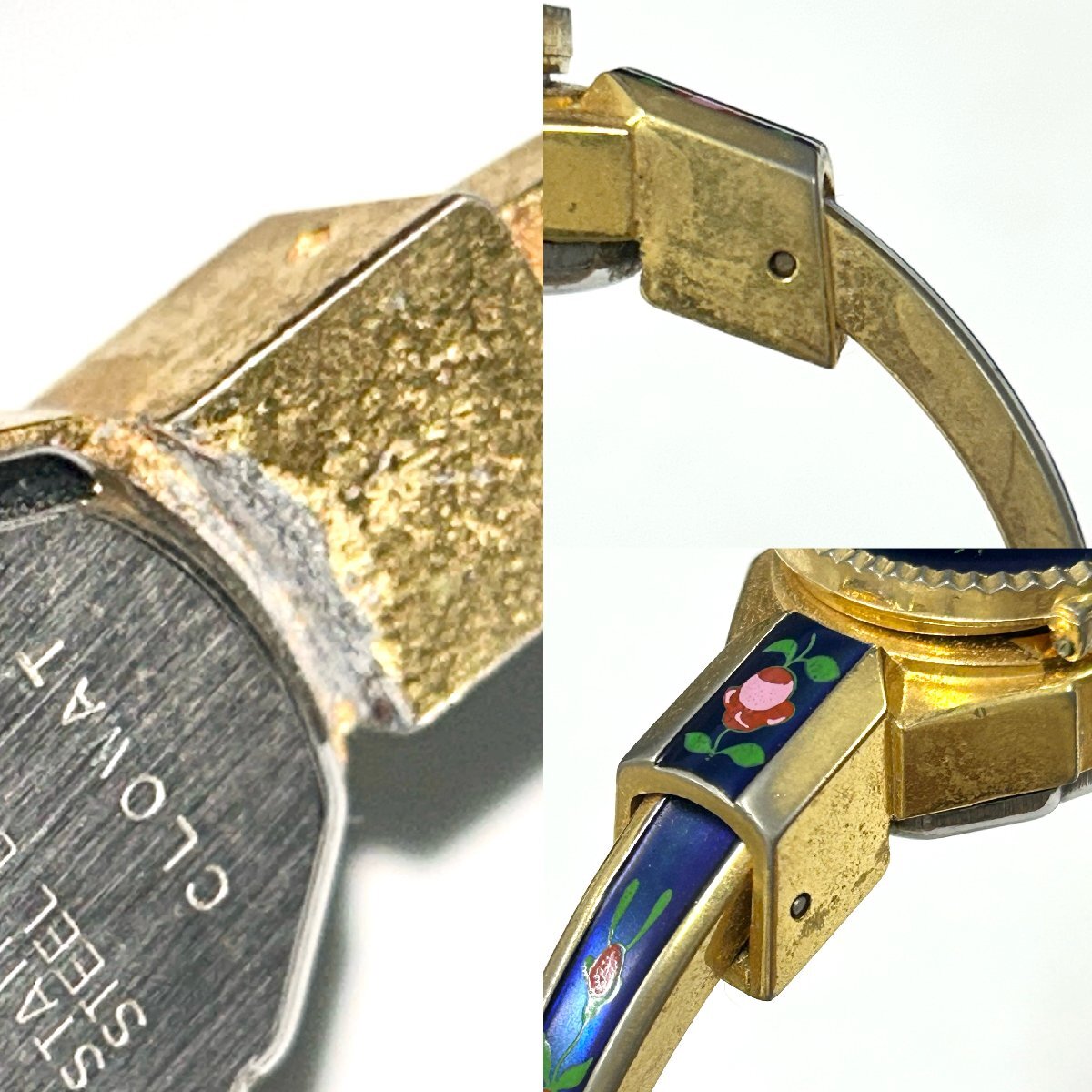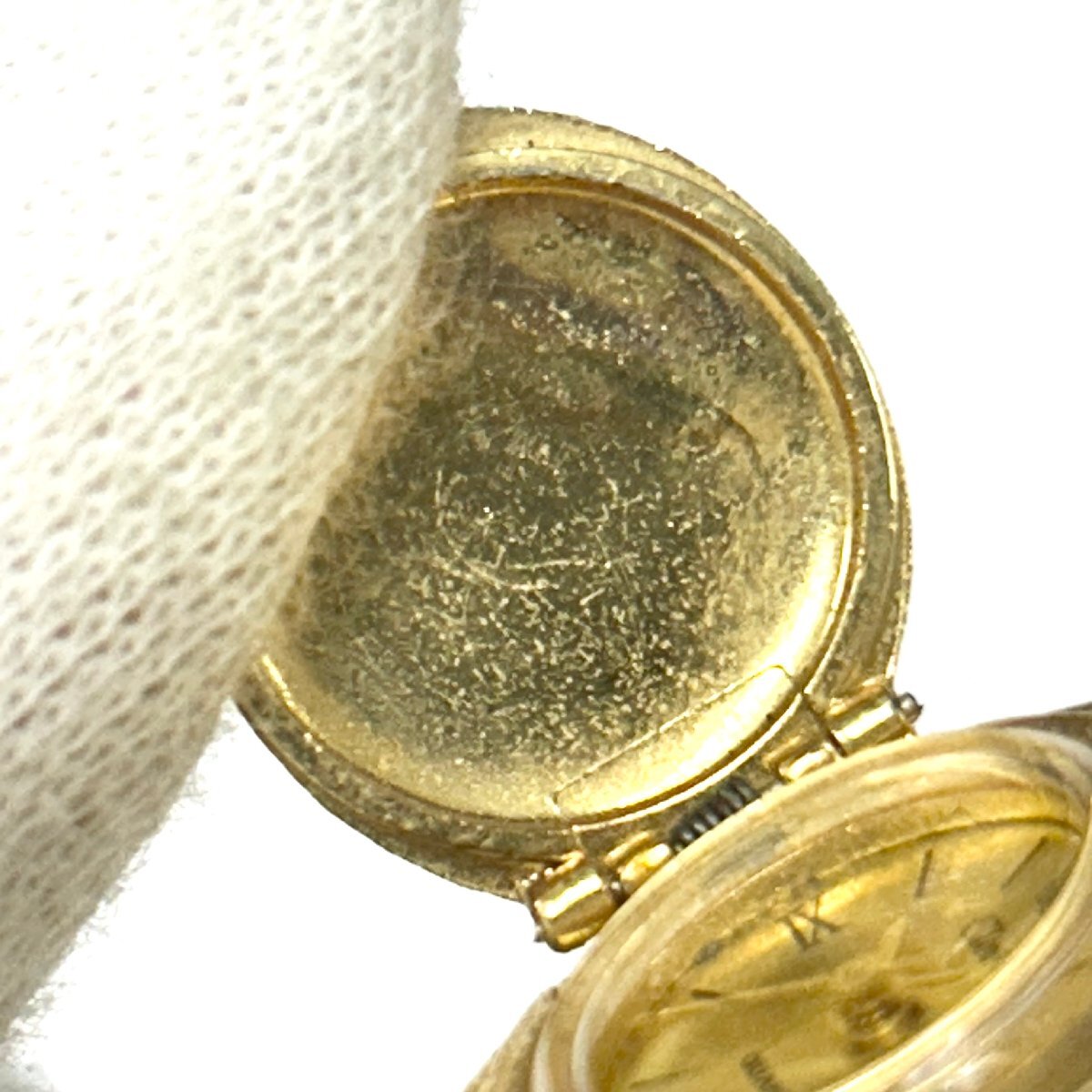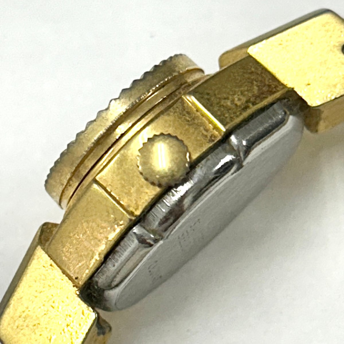 ・薄汚れ、スレ 【文字盤】 ・小さな汚れ付着、薄汚れ 【ケース】 ・メッキ剥げ、くすみ、スレ、キズ、カビ汚れ、小さな打痕 【リューズ】 ・くすみ、薄汚れ、スレ |