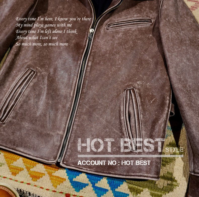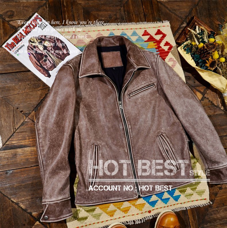 1.3mm カウハイド 1930s トラッカースタイル シングルライダース ウォッシュ加工 ヴィンテージ メンズ 革ジャン レザージャケット 植物鞣し 牛革 Y1427/S~4XLサイズ指定可