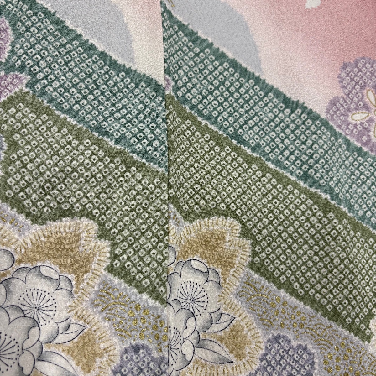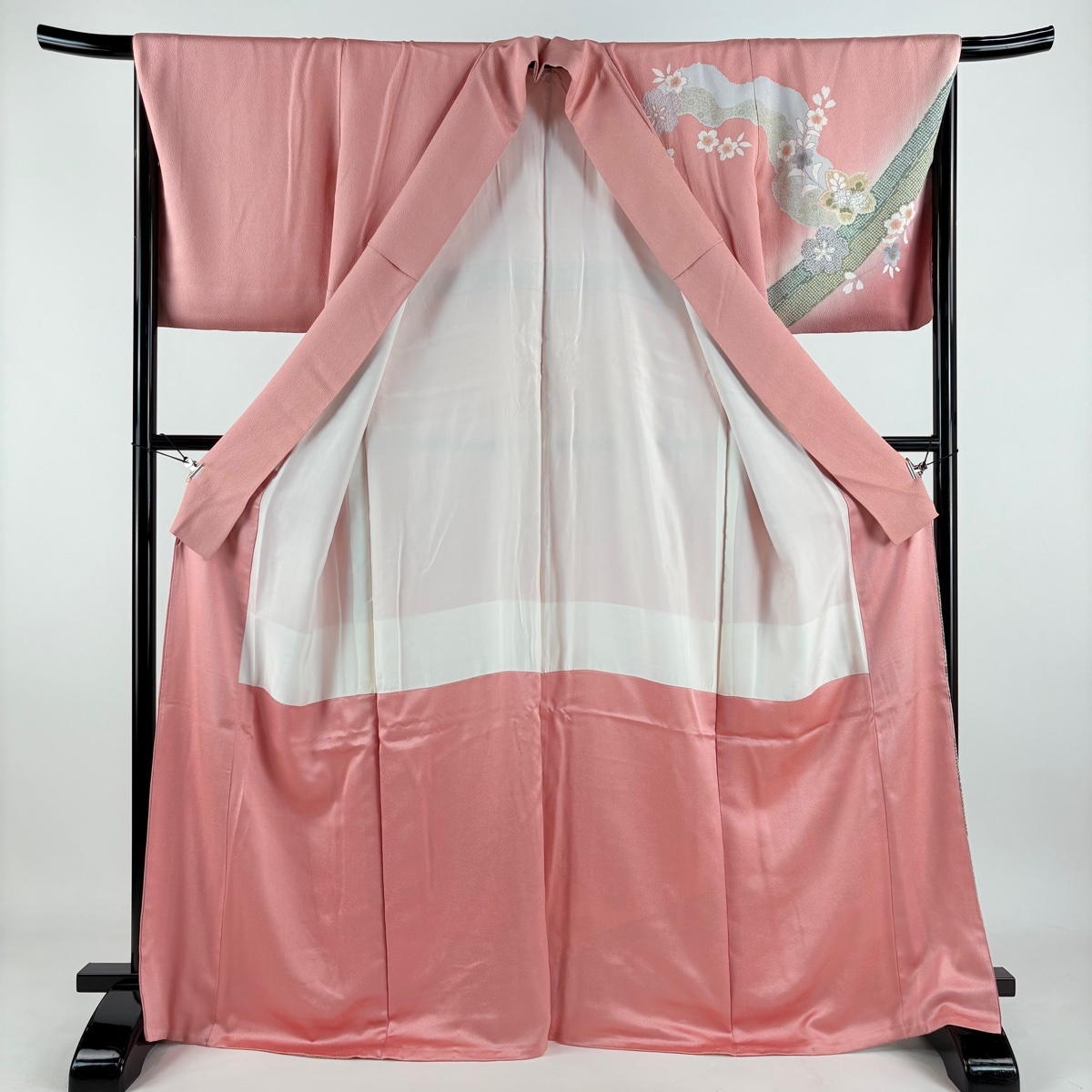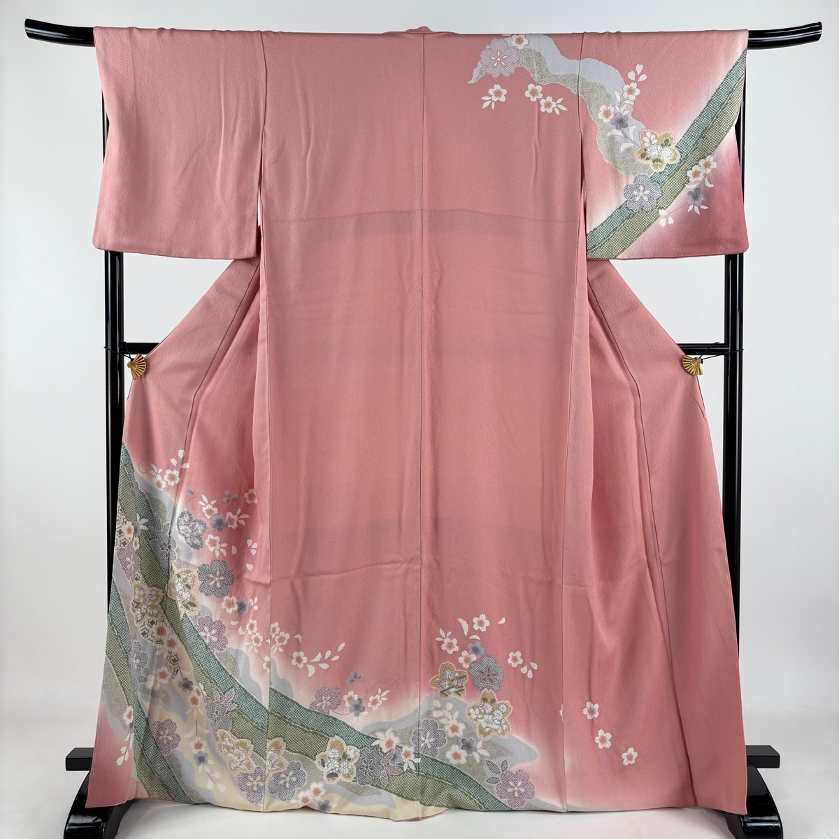 | 訪問着 秀品 桜 疋田柄 金彩 絞り ピンク 袷 身丈168.5 裄丈67 M 正絹 【中古】 |