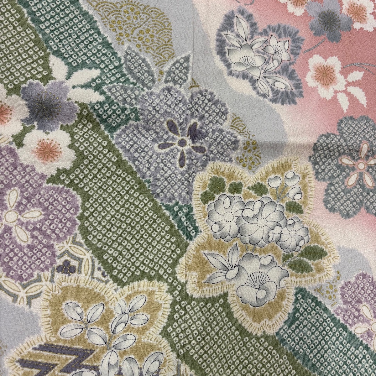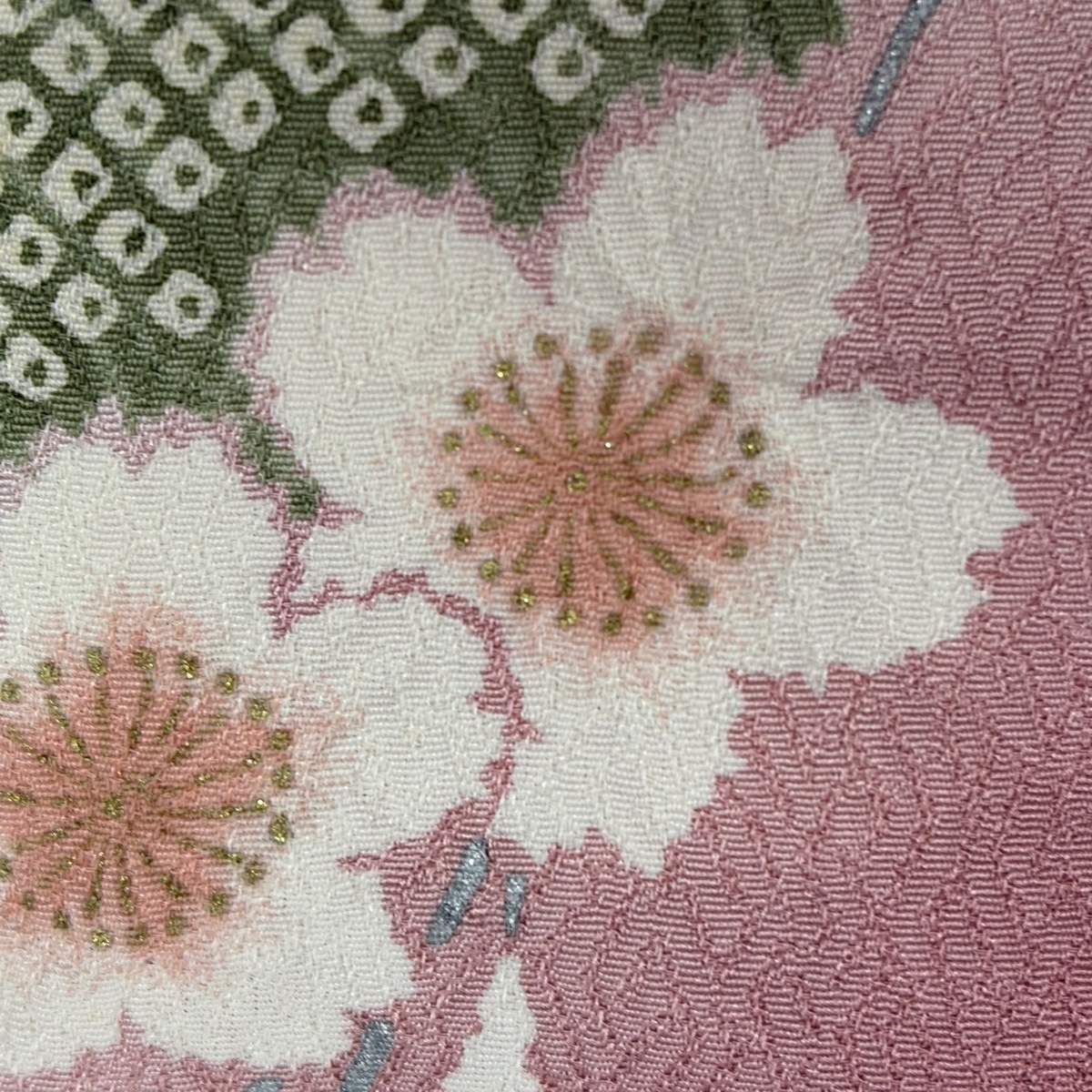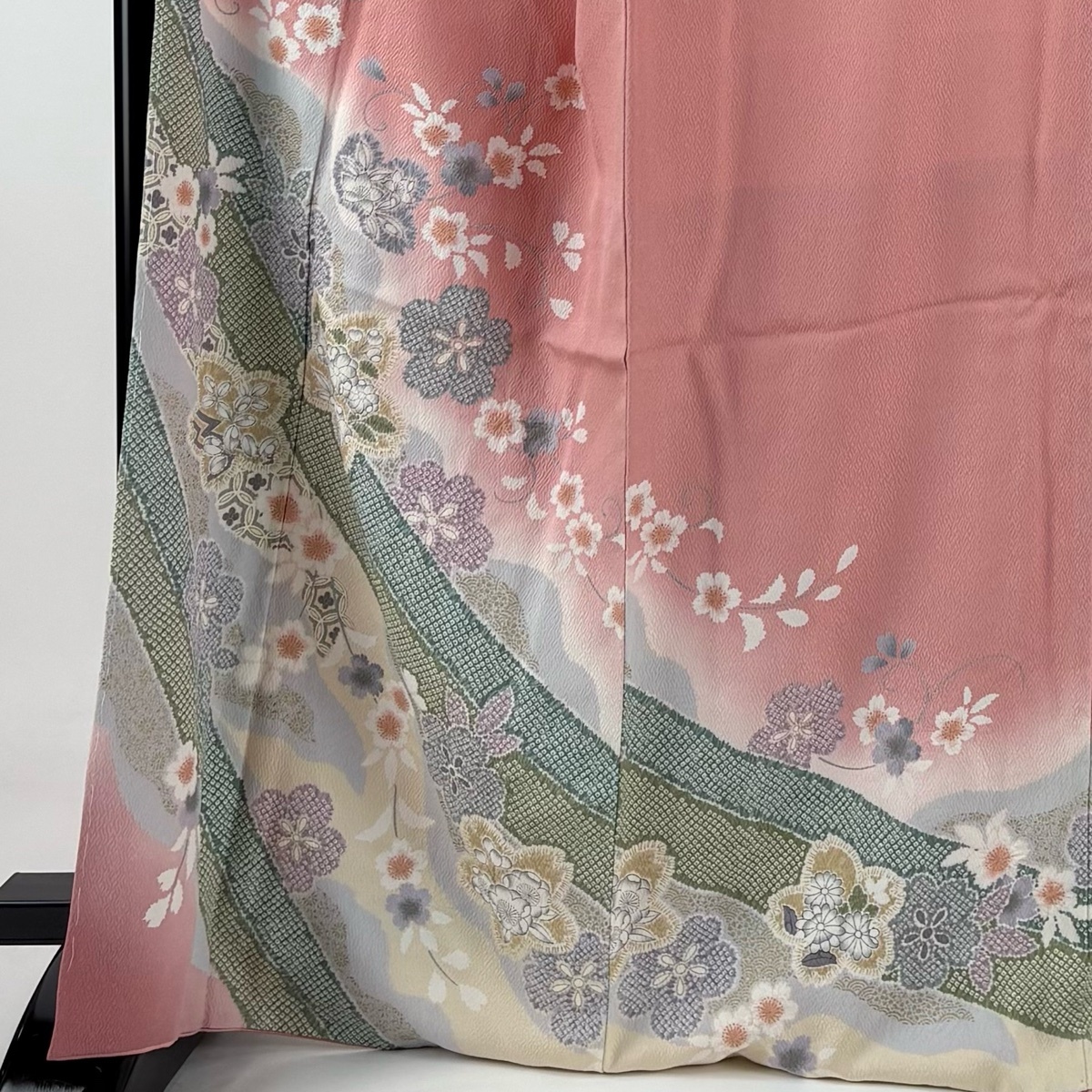 | 訪問着 秀品 桜 疋田柄 金彩 絞り ピンク 袷 身丈168.5 裄丈67 M 正絹 【中古】 |