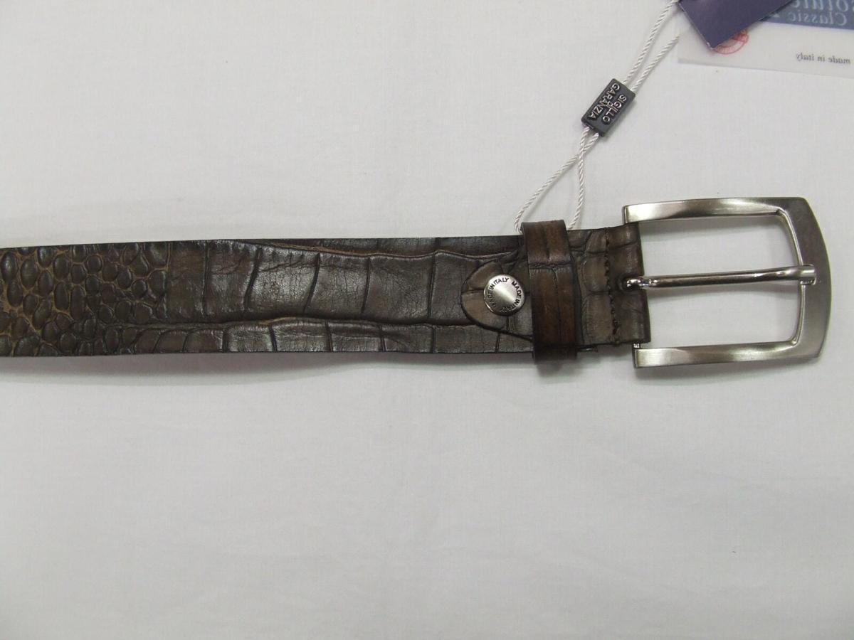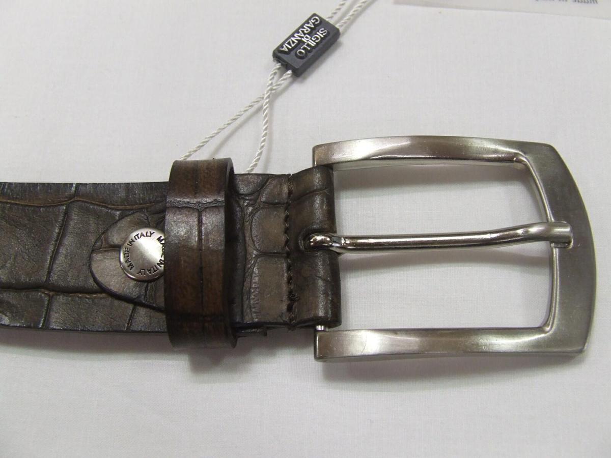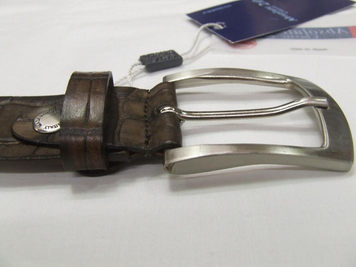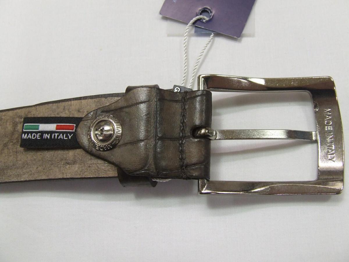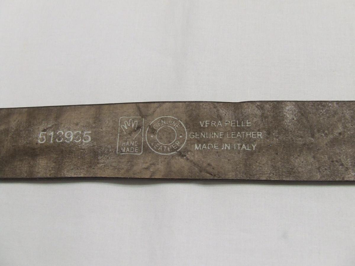 本革を知るならイタリアンレザーから始めよう! 革の本場イタリアで生まれるレザーは「イタリアンレザー」と呼ばれ、世界中で多くの方に愛されている本革です。特に初めて革製品を持つのであれば、種類も豊富で選びやすいイタリアンレザーがおすすめです。 イタリアンレザーには、3つの大きな特徴があります。 オイルレザー イタリアで作られるほとんどの革は、オイルをたっぷりと染み込ませたオイルレザーとなっています。オイルレザーは柔らかくてしっとりとした手触りと、深みのある色つやが特徴です。新しい革は明るい色味で光沢もあり、女性にも人気があります。 牛革を使用 イタリアンレザーは、牛革を使用していることがほとんどです。牛革は他の革(羊や馬、クロコダイルやヘビなど)に比べると、比較的手に入りやすいのが特徴。その分価格も抑えられており、初めてでも選びやすいレザーです。 初心者向けとはいえ、皮の種類や部位、加工法などはさまざま。知れば知るほど奥が深い、大人な魅力がたくさんあります。 バケッタ製法 イタリアで作られる高級レザーの多くは、この「バケッタ製法」と呼ばれる製法で作られています。バケッタ製法は、イタリアの伝統的な製法です。膨大な時間とコストをかけて、じっくりと特殊なオイルを革に染み込ませていく製法です。 しっとり滑らかな手触りと、使うほどに深く変化する色つや。乾燥しにくく、メンテナンスをほとんど必要としない強さが特徴です。「ミネルバボックス」や「マットーネ」は、バケッタ製法で作られる代表的な高級イタリアンレザーです。 状態:新品タグ付き サイズ:ウエストサイズ105cm~117㎝(ロングサイズ) 長さは切って簡単に調節できます。 ベルト幅:34MM 素材:牛皮 カラー:ブラウン系 希望小売価格:12,800円(税抜き) 製造:イタリア ※皮革製品につき多少のスレ・キズ等はご了承願います |