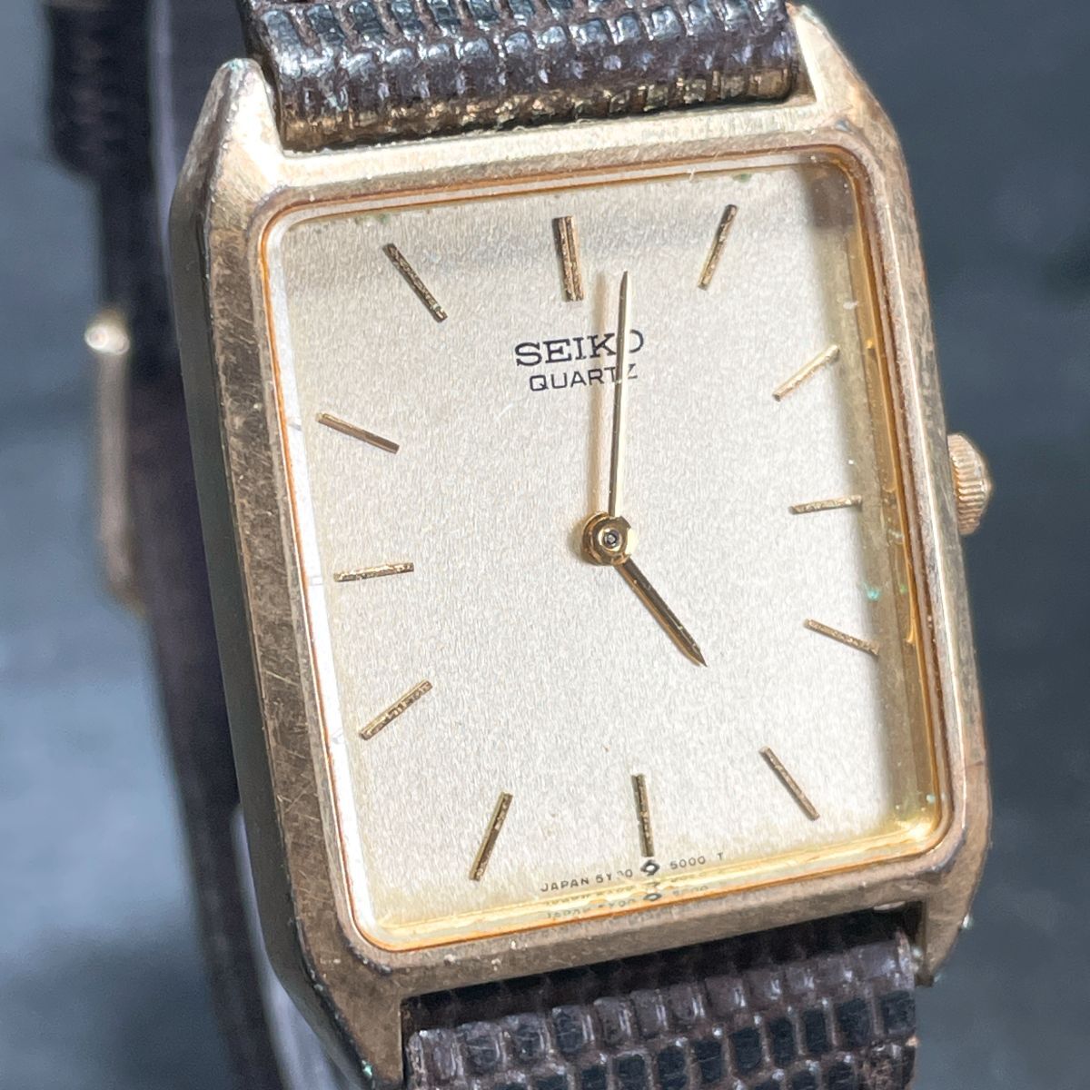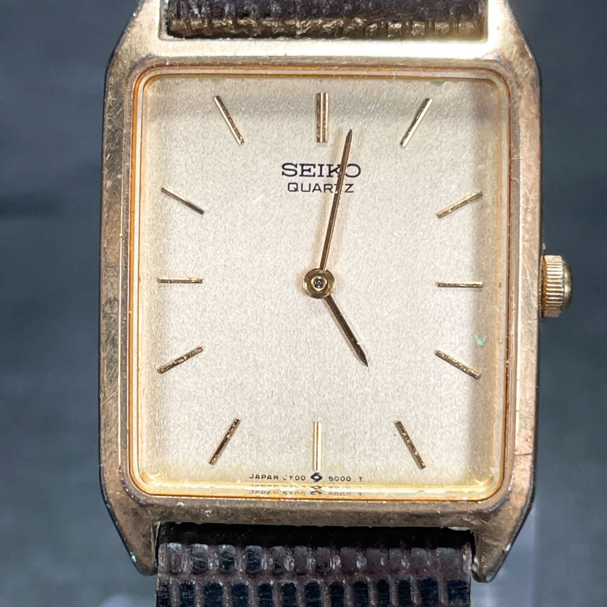 1970年代製 SEIKO セイコー 5Y00-5000 腕時計 アナログ クオーツ ヴィンテージ 諏訪精工舎 ゴールド文字盤 新品電池交換済み 動作確認済み