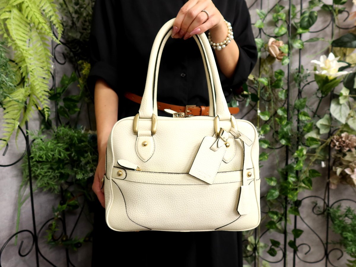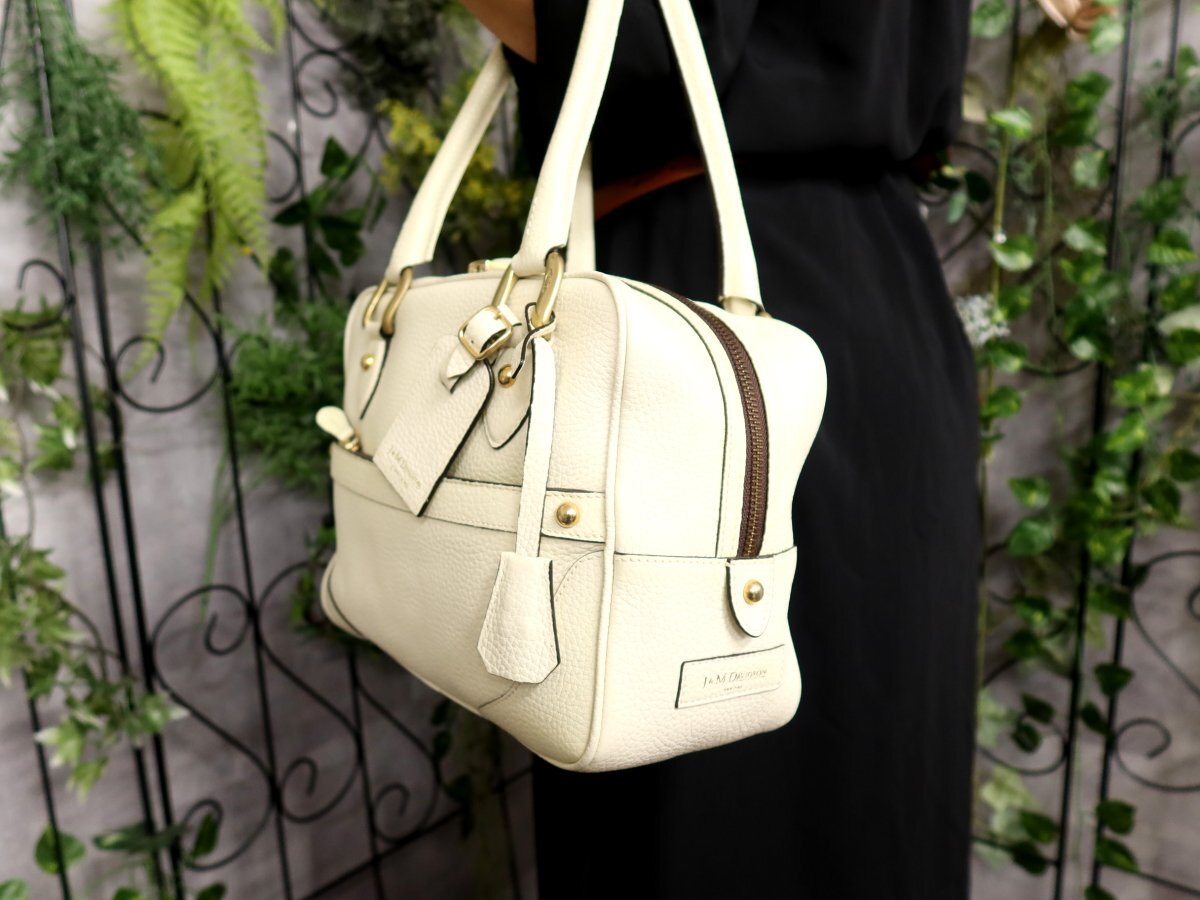 ●超美品●J&M DAVIDSON デヴィッドソン●カーフ レザー 本革●ハンド バッグ●アイボリー●ゴールド金具●B5 収納 書類 かばん●Js61030