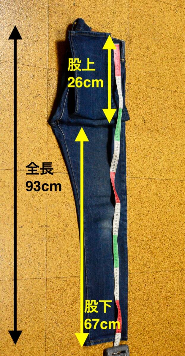 この表の中で、ウエスト○○cmとあるのは、商品のウエストの寸法になります。