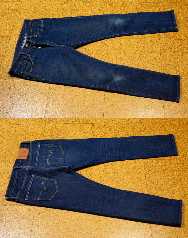 2015年に発表された「501 CT」も細身のジーンズだったが、こちらは“カスタムテーパード(CT)”なので、膝から下にかけて次第に細くなっていくデザイン。「501 スキニー」は、太ももの周りから細く作られているので、よりピッタリした着用感となります。ストレッチなので、細見でも着易そうです!フロントはボタンフライです。