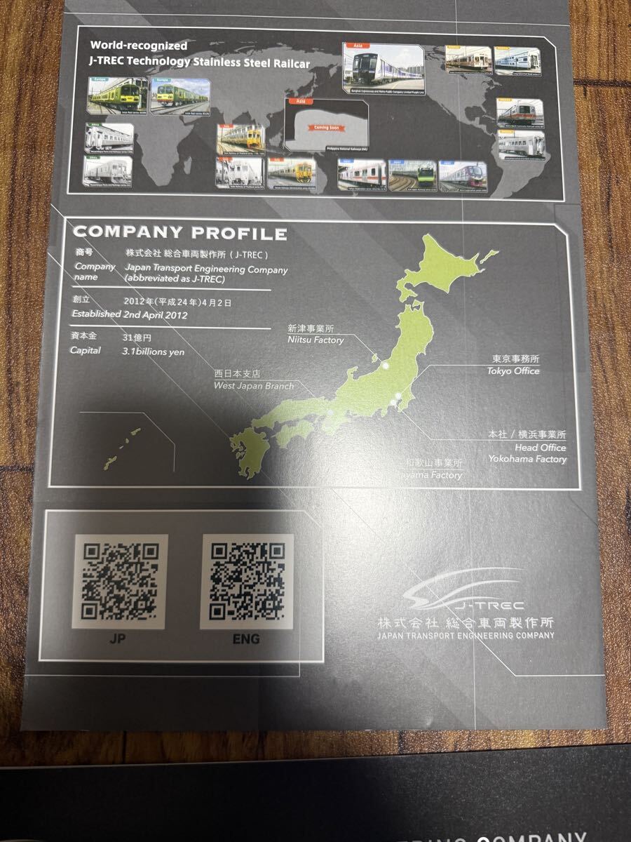 【商品の状態】株式会社総合車両製作所(J-TREC:Japan Transport Engineering Company)パンフレット2部