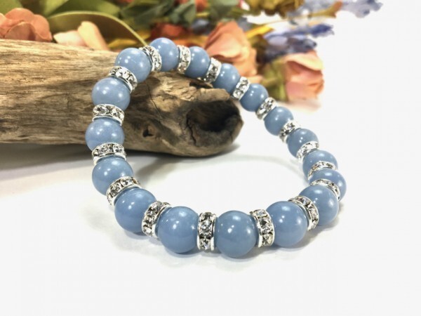 こちらは、10mm玉のエンジェライトを使用したパワーストーンブレスレットです。間にはロンデルを挟み高級感あるブレスレットに仕上げています。石大きさは腕にも馴染みやすいように10mm玉を使用して、サイズは内径約18cmです。(サイズ調節も無料で承っています。サイズ変更の場合は落札後、取引ナビにてご一報くださいませ。) 数に限りがございますので気になる方はお早めにどうぞ。