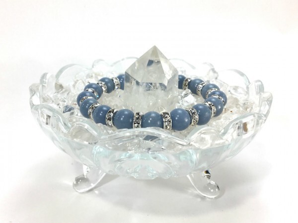 エンジェライトは非常に優しい力を持った石。人生において大切なものを気づかせ、そうした大切なものに対して広い愛の心を持つよう、持ち主を導いてくれると言われいます。