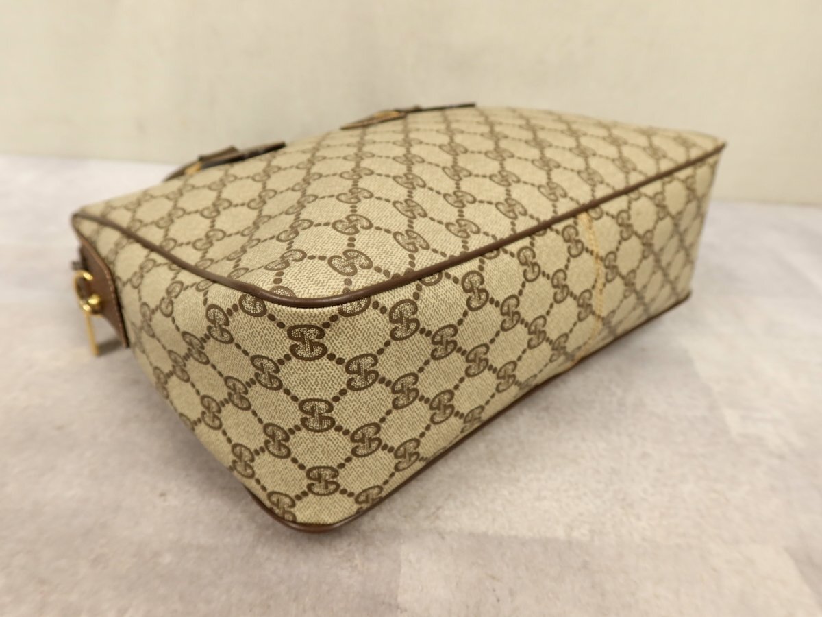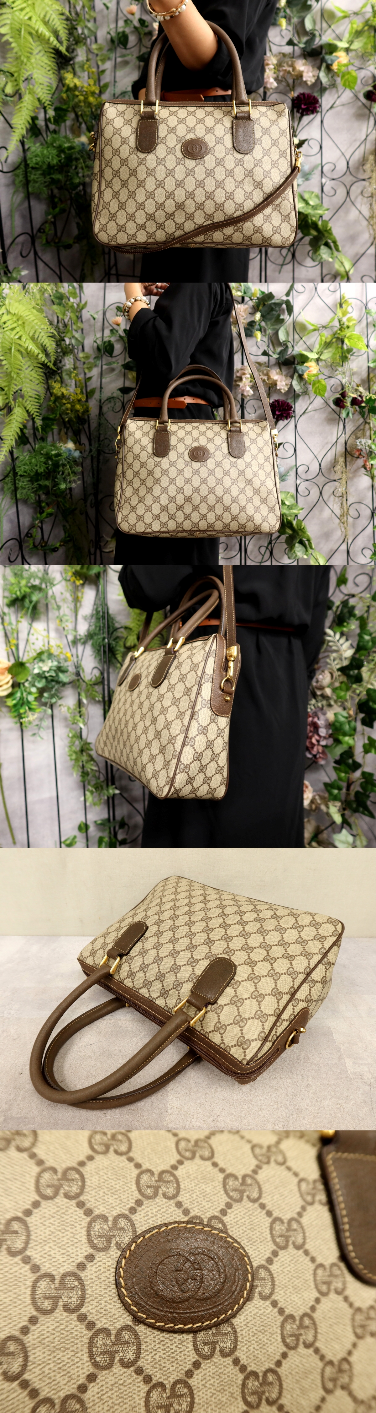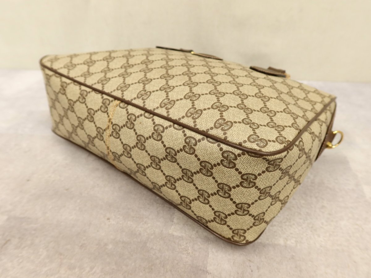 ●超美品●オールド グッチ●GGスプリーム●PVC カーフ レザー 本革●2way ハンド バッグ●ブラウン ベージュ●ヴィンテージ●B5●Js60967
