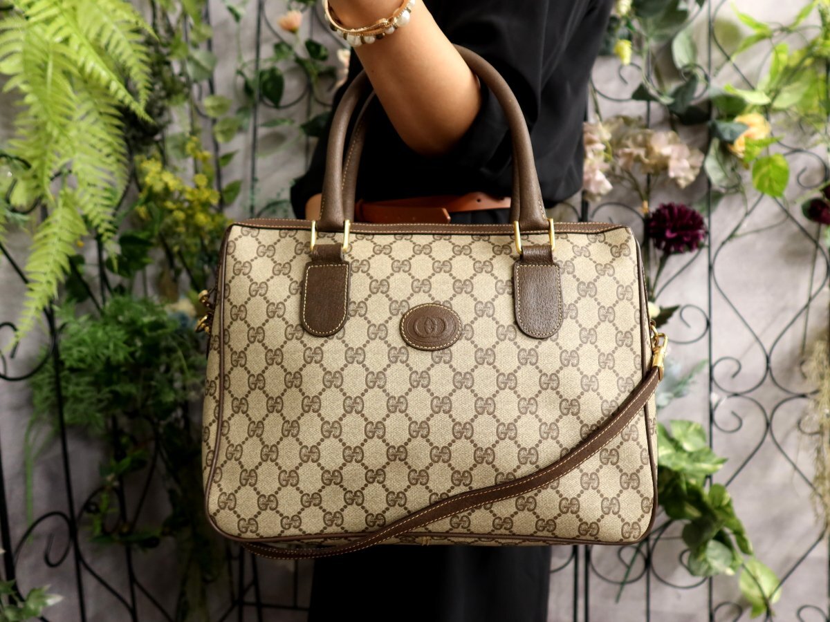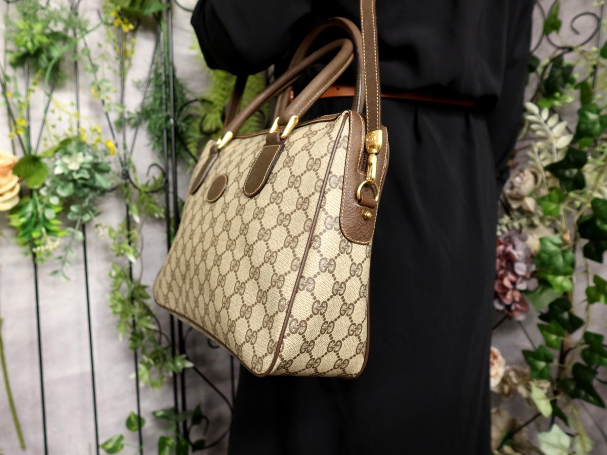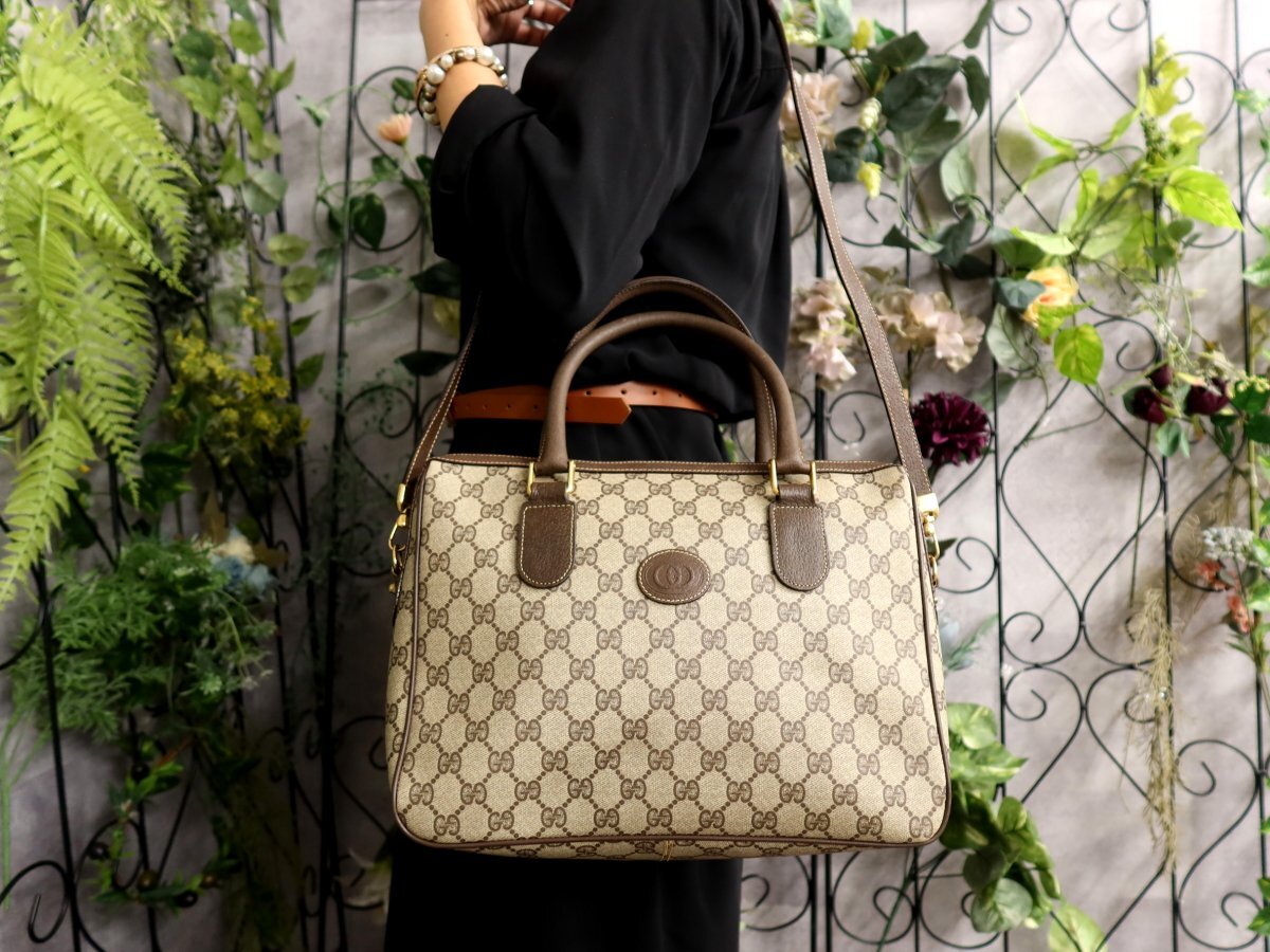 ●超美品●オールド グッチ●GGスプリーム●PVC カーフ レザー 本革●2way ハンド バッグ●ブラウン ベージュ●ヴィンテージ●B5●Js60967