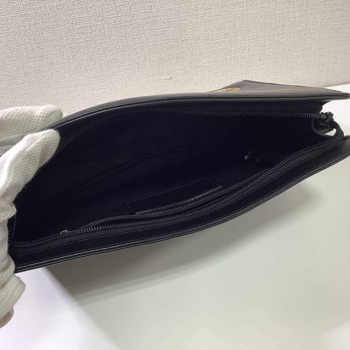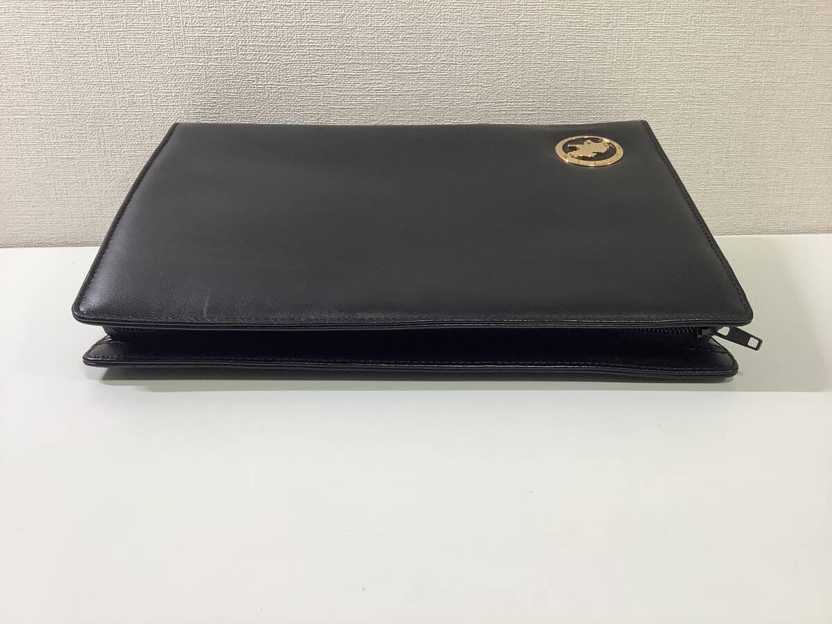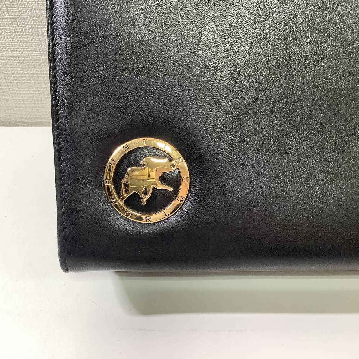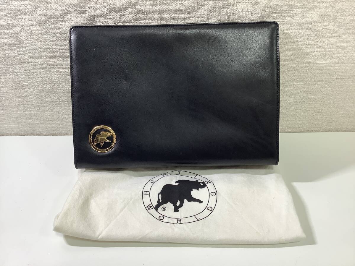 8137◆ HUNTING WORLD ハンティングワールド セカンドバッグ クラッチバッグ レザー 黒 ブラック 長期保管品
