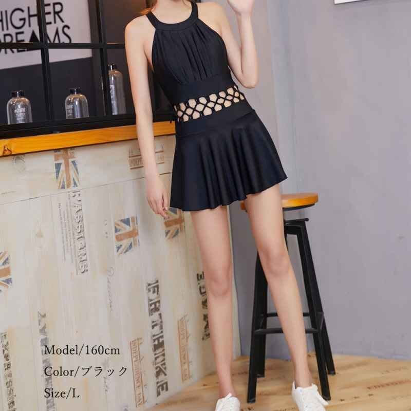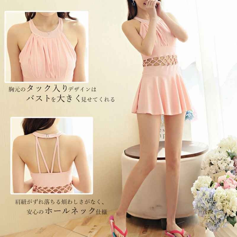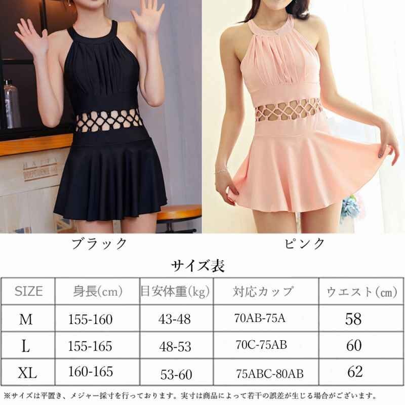 ホルターネック 水着 ワンピース 体型カバー 背中 開き リゾート 水着 XL ピンク