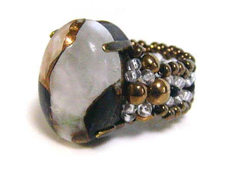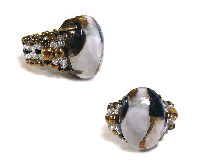 圧縮して貼り合わせた、アーティスティックなカボッションです。
