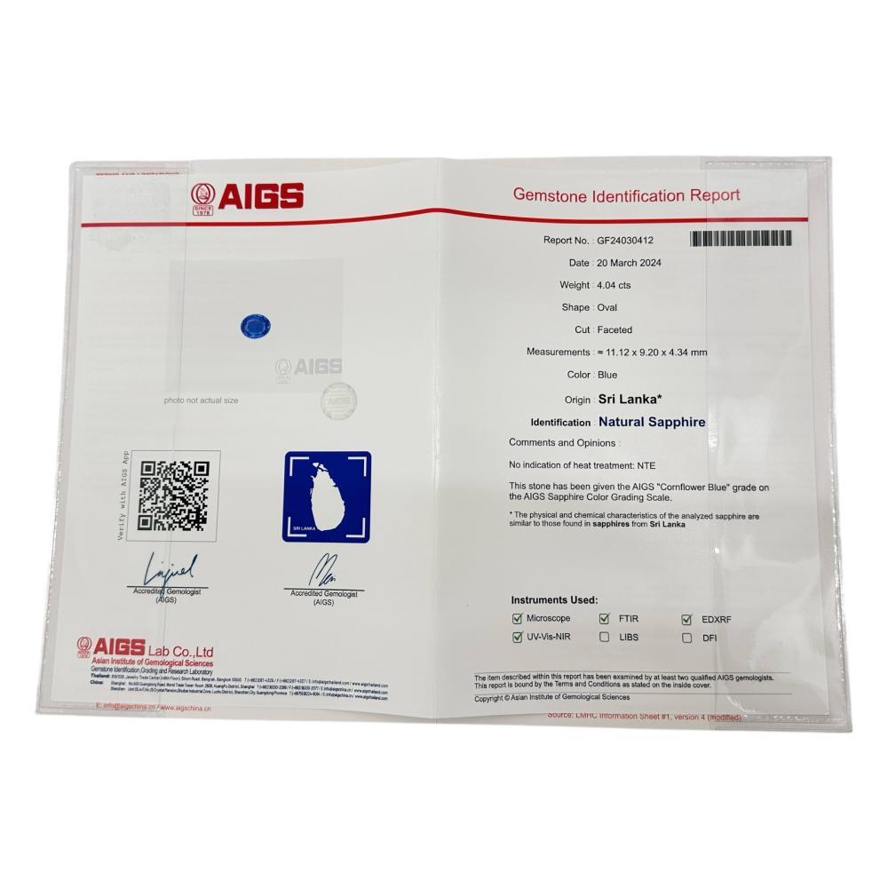 ★石 | スリランカ産非加熱コーンフラワーサファイア:4.04ct ダイヤモンド:0.44ct |
