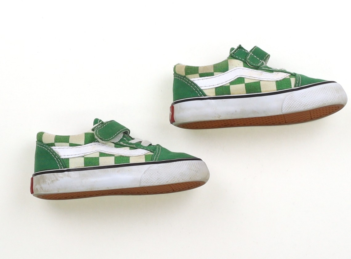 実際のサイズ表記は13.5cm。キャンパス地。マジックテープでの着脱。ラバー部分に土汚れの跡がありますが、機能性に問題はなさそうです。まだお使いいただけます。