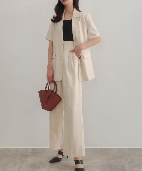 参考商品名:リネン混半袖ジャケット+ハイウエストパンツset