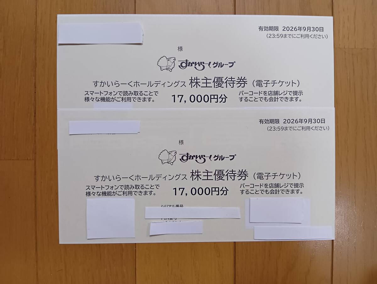 ● 最新のすかいらーくホールディングス株主優待券 34,000円分です。